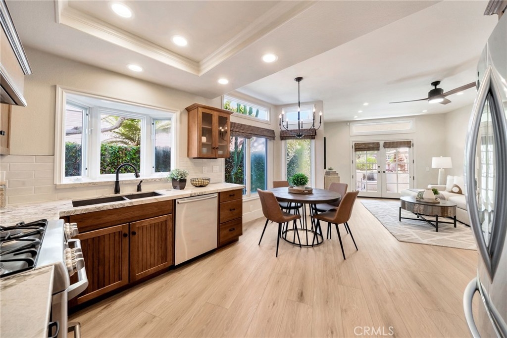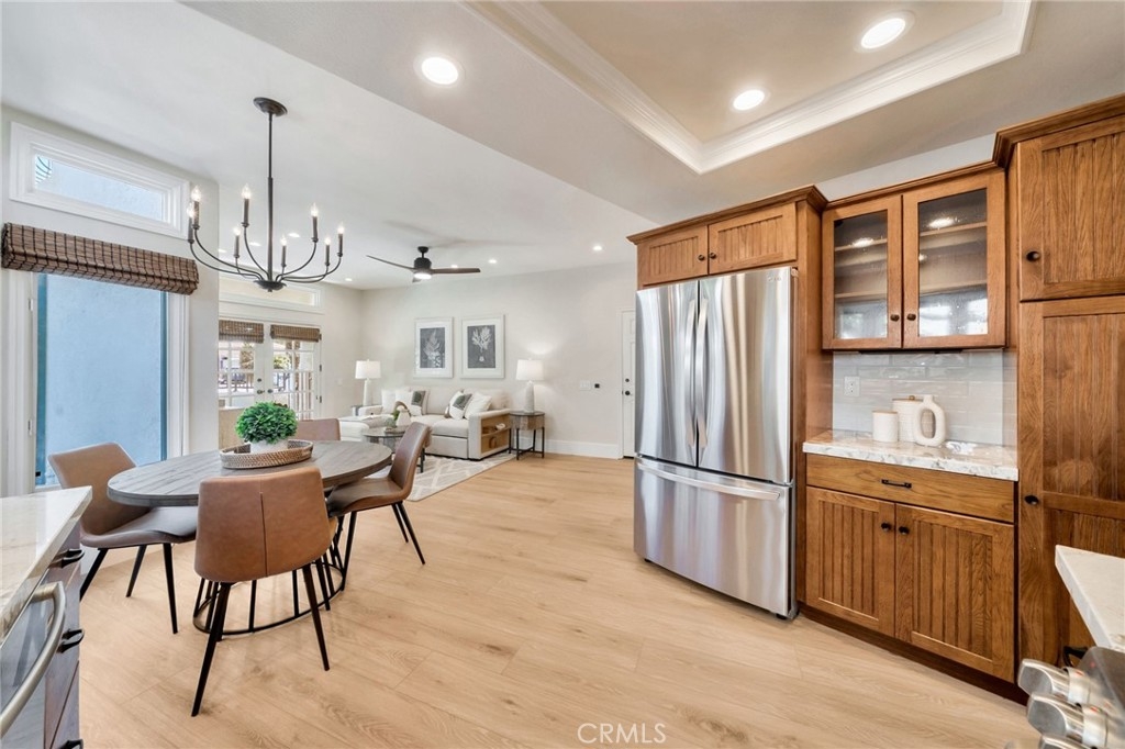 Stunning Ocean View Home in Dana Point's Lantern District. Welcome to Portofino – 24433 Santa Clara Avenue, a breathtaking coastal retreat in the heart of Dana Point’s sought-after Lantern District. This beautifully remodeled home offers ocean views from the primary suite and is designed with luxurious, modern finishes throughout. The main level features two comfortable living spaces: a cozy living room with a fireplace and a separate family room, providing ample space for both relaxing and entertaining. The eat-in kitchen is a chef’s dream, showcasing custom cabinetry, quartz countertops, top-of-the-line stainless steel appliances, and direct access to the private kitchen patio. A formal dining area, stylish half-bath, and newly installed Cortina luxury vinyl plank flooring complete the first floor. Upstairs, you’ll find two spacious bedrooms, each with fully remodeled ensuite bathrooms, plenty of natural light, and stunning ocean views. A generous loft/office offers flexibility as a potential third bedroom, home office, or creative space. Enjoy multiple outdoor areas, including two upper-level patios and a lower patio—ideal for social gatherings or quiet moments. Located amid Dana Point’s $500 million harbor revitalization, this home is just a short walk from pristine beaches, Dana Point Harbor, and a wide selection of restaurants, bars, and boutiques. With recent upgrades including new flooring, countertops, backsplash, lighting, fresh interior paint, and fully remodeled bathrooms, this turnkey property offers the perfect combination of location, luxury, and lifestyle.