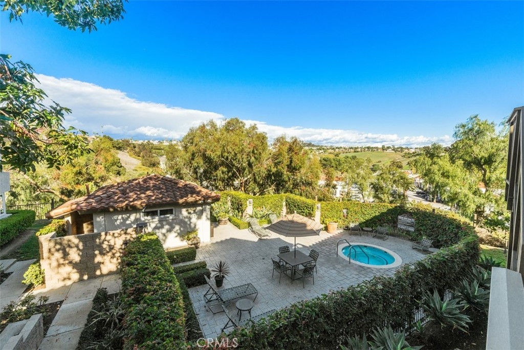 Location, location, location! Nestled in the Monarch Beach hills adjacent to the Waldorf Astoria and Ritz-Carlton hotels, this serene Greenbelt unit is in the exclusive 24 hour guard-gated community of Ritz Pointe. Invite the outdoors in as you relax on your private patio which opens to a lush, grassy area that feels like your own yard. Upon entering you are greeted by a spacious living room with a fireplace and scenic hillside views from every window. The kitchen offers stainless steel appliances, granite countertops and a great garden window for natural light. Adjacent to the kitchen is a large dining room with a mirrored wall, custom paint and moldings. The luxurious master bedroom with ensuite master bath has an expansive walk-in closet. You have access to your own discreet laundry room with washer, dryer and storage space off your picturesque back patio. A sizable second closet near your entry offers space for additional storage and your exclusive covered carport parking is just steps away. Residing minutes from the Pacific Ocean, you can enjoy the coastal breezes, turn on your ceiling fans or simply use the A/C. Community amenities include a large heated pool, three jacuzzis (one with ocean and sunset views), a clubhouse with a fitness room and access to a walking path to the sandy shores of Salt Creek Beach. Located in an area of multi-million dollar homes and next to the Monarch Beach Golf Links, you can live your best life in South Orange County surrounded by luxury. This coastal abode would make an ideal primary residence, vacation home or investment property. One of the most affordable properties in the area; must see!