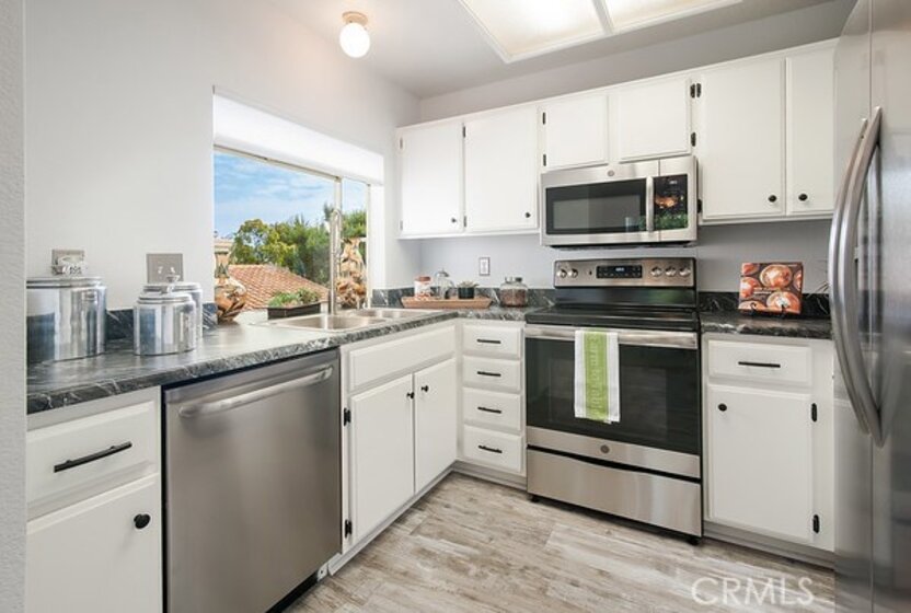 This newly upgraded condo is situated in the prestigious community of Ritz Pointe within walking distance to Salt Creek Beach, Monarch Beach and Ritz Carlton Resorts. Short ride to Dana Pointe Harbor, shopping, restaurants, whale watching. This one bedroom/one bath is turnkey. It has been completely upgraded with new paint, flooring, stainless steel appliances (stove, microwave, refrigerator), garbage disposal, newer dishwasher, upgraded countertops in the kitchen and bathroom, new stainless steel kitchen sink. New window coverings throughout. Living room has 65" big screen TV. Newly upgraded bathroom. Master bedroom has walk-in closet with sky-light and overhead storage in the bedroom. Laundry is located on the patio in a separate closet. There is also additional large storage closet outside front door. Although this unit has central air and heating, you can keep your windows open as this unit is located on the South breezy side allowing for the ocean breeze to flow through. Resort-like facilities include sparkling pool, 3 spas (1 with ocean view), clubhouse for all your entertaining and gym. Ritz Pointe is an exclusive 24-hour guard gated community. Complex is scheduled to be newly painted in June.