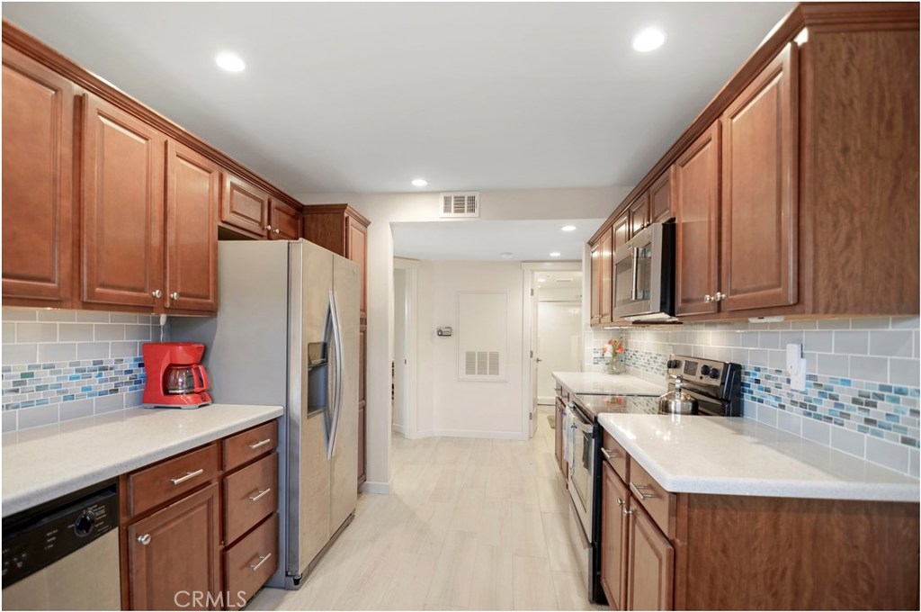 Light and bright 2 bedroom 2 bathroom ground floor condo. Upgrades include, expanded kitchen with hard surface countertops, stainless steel appliances, ceramic tile flooring (“plank style”), modern vanities with under mount sinks and hard surface countertops, dual glazed windows and patio doors, recessed led lighting, “shaker” style fireplace mantle with custom tile work surrounding the fireplace, “shaker” style interior doors with polished chrome lever handles, “shaker” style baseboard and door trim throughout, and a newer Bradford and White strapped water heater Each bedroom features a walk-in closet, plus the Master bedroom includes an ensuite bath! Over sized living room with gas fireplace. The separate laundry room includes full size laundry hook-ups. Make no mistake, this is where you want to be! Monarch Beach living is like vacation-living year around. Walking trail leads to the sparkling blue Pacific, the renowned Ritz Carlton Hotel and St. Regis Resort! (Just under 1 mile) Resort-like facilities include a resort-style pool, 3 spas’ (1 with ocean view), and clubhouse. 24-hour guard gated Ritz Pointe community adjacent to the Monarch Beach Resort . Only a bike ride away from the Dana Point Harbor restaurants, shopping and more!