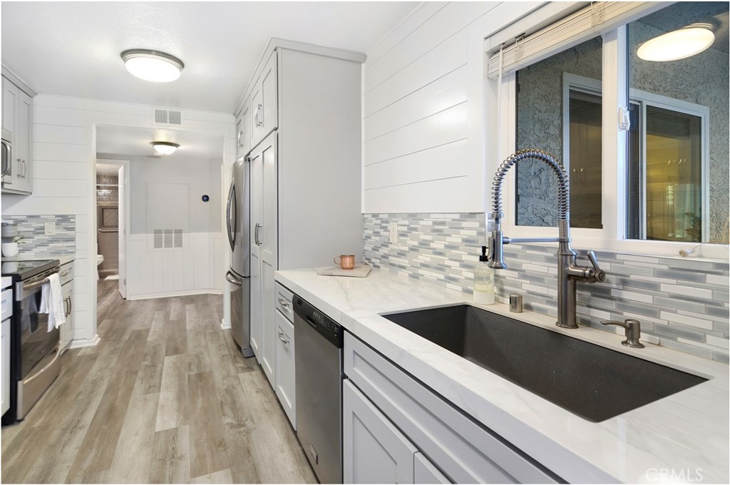 W O W !! Just wait until you see this drop-dead GORGEOUS beach condo!! Unbelievably light and bright two bedroom, two bath floorplan with upgrades GALORE!! Upon entering this immaculate home, you will feel like you have arrived in Martha's Vineyard! Beautiful wood themed flooring and fantastic wainscoting throughout add a Cape Cod like elegance and charm! The front door opens to an inviting living room with cozy fireplace to keep you warm on those chilly California nights! The kitchen is a chef's dream complete with dazzling marble counter tops, stainless steel appliances, sleek grey cabinetry, and amazing oversized sink! The master bedroom is an oasis of luxury with a stunning master bath and walk in closet. Outside is an oversized balcony that is perfect for entertaining or just relaxing!! Complete with newer windows, patio doors and two storage closets! Located in the prestigious community of Ritz Pointe in Monarch Beach. It is less than one mile from the sparkling blue Pacific Ocean, you can walk to the beach or bike on your favorite Surfrider bike! Monarch Hills amenities include two guard gates, gym, a clubhouse, 3 spas, 1 pool, and is only minutes to Dana Point Harbor, Laguna Beach, fine dining, Cinepolis movie theater, The Waldorf Astoria Resort and Sap and the Ritz Carlton. Run, don't walk, this one will NOT last!