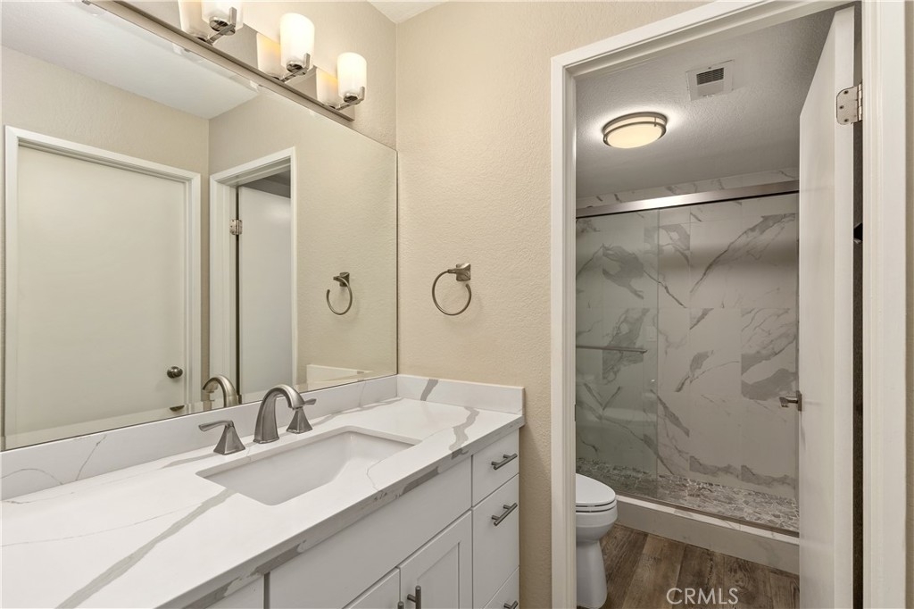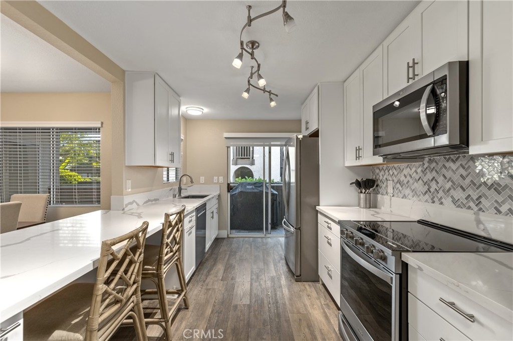 If you are looking for a turnkey condo in an exclusive guard-gated community near two world-class resorts, look no further! Located behind the gates of Ritz Pointe in Monarch Beach, this beautifully renovated unit in Monarch Hills is spacious enough for everyday living or use as 2nd home/resort property. This 1st floor unit provides ease for every day living and is located on street level (w/just one unit directly above in a 2 story bldg) w/no stairs to climb and comes w/highly coveted garage space in a shared 2 car detached garage nearby. Step inside to the living room w/ceiling fan, stacked stone tiled gas fireplace & travertine tiled hearth. The living room flows to the dining room w/decorative light fixture that can comfortably seat guests which leads to the open kitchen where you'll find white shaker cabinetry w/brushed nickel hardware, quartz counters, herringbone tile backsplash, breakfast bar and stainless steel appliances. The owner's suite has a ceiling fan w/light fixture, a huge walk-in closet w/closet system and ample storage, bath w/white shaker cabinet vanity, beveled mirror, medicine cabinet, quartz counters and walk-in shower w/marble-look tile w/shampoo niche and glass doors. Sliding glass doors from owner's suite leads to covered patio and adjacent laundry room/utility closet w/washer & dryer and storage cabinets. The 2nd bdrm has ceiling fan w/light fixture, a spacious closet w/closet system and shelving. Second bath also has white shaker vanity w/quartz counter, beveled mirror, medicine cabinet & walk-in shower w/marble look tile & shampoo niche. You'll love having additional storage w/coat closet & exterior storage closet near front entrance. Additional features include faux wood blinds, custom shades, water heater replaced 2018 and HVAC replaced late 2020. Outdoor space abounds w/3 sets of sliding glass doors that lead to the outside from the living room, kitchen and owner's suite w/stone like tiled patio. Nestled in a prime location just a stone's throw from clubhouse w/pool and spa! Monarch Hills is known for resort-style amenities with 2 additional spas - one w/golf to ocean views and one overlooking the mountains. Short jaunt to Salt Creek State Beach, the Waldorf Astoria & Ritz Carlton resorts & nearby shopping & dining. Just minutes to the Dana Point Harbor & Laguna Beach. Unit being sold fully furnished! No waiting for furniture on ships -just move in & start enjoying!