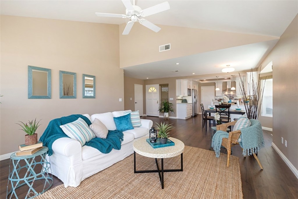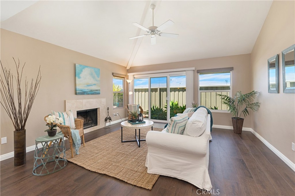 Hurry! This rarely available, single story detached condo in the Sea Ridge Community won't last! Re-modeled kitchen with quartz countertops, fresh white cabinetry, stainless appliances and new laminate flooring throughout the kitchen, dining and living room. Open living space is brightened by a large bay window, vaulted ceiling, pendant lights, recessed lighting, double pane windows, attractive custom window shades, travertine framed fireplace and sliding glass doors leading to a private, fully fenced wrap around patio. Large master suite has new carpet, ceiling fan, granite vanity with dual handcrafted copper sinks, bath with a garden tub and travertine floor. Second bedroom includes bamboo floor, mirrored closet doors, ceiling fan and view of the courtyard. Guest bath is re-modeled with new vanity, Cesar stone counter top, and beautiful stone walk in shower. Plenty of storage and a lushly landscaped courtyard lead up to the front door. Garage is oversized to accommodate 2 vehicles plus washer/dryer hook ups for gas or electric. Sea Ridge offers a community pool, spa, tennis courts and exterior maintenance. Excellent location off Golden Lantern in the heart of Dana Point. Minutes from beaches, Dana Point Harbor, golf, restaurants and shopping galore.