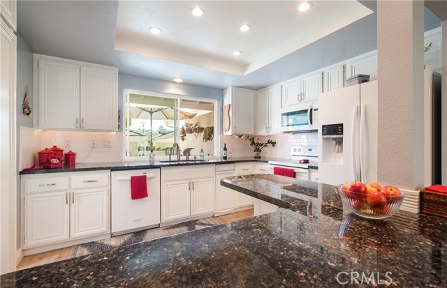 A bit over a mile to beautiful beaches, five-star resorts, hiking trails, and Dana Point Harbor... You will enjoy many hours relaxing on the large entry deck to this charming townhome featuring open floor plan with vaulted ceilings, engineered hardwood flooring, kitchen with granite counters and breakfast bar, balcony overlooking wooded landscape, and half bath on the main level. On the lower level, you will find master suite and second bedroom suite opening to a pleasant shaded patio, and laundry room. Just steps away, enjoy watching sunrises and sunsets from the clubhouse deck with spectacular ocean and coastline views, pool, spa, tennis court, and large park-like greenbelt.