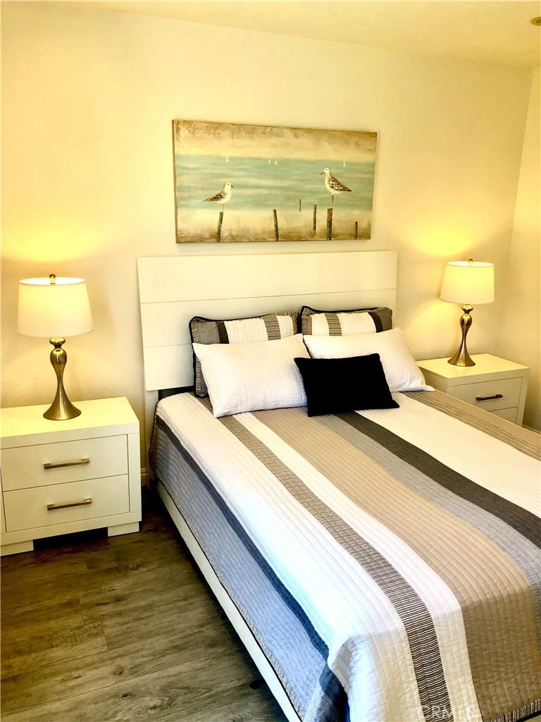 Ease into beach living with this peaceful single story, end unit condo with 2 bedrooms, 2 bathrooms, 1 car garage in the heart of Dana Point. Nestled amongst multi-million dollar homes this condo has updated kitchen, bathrooms, laminate and tile flooring, indoor laundry, walk in closet, freshly painted and is move in ready. The pool and jacuzzi are right out the back slider. Quiet complex of only 28 units with low HOA at only $295 a month. Perfect for fulltime living, weekend getaways or rental investment. You can walk to the beach or downtown and take in the beach life.