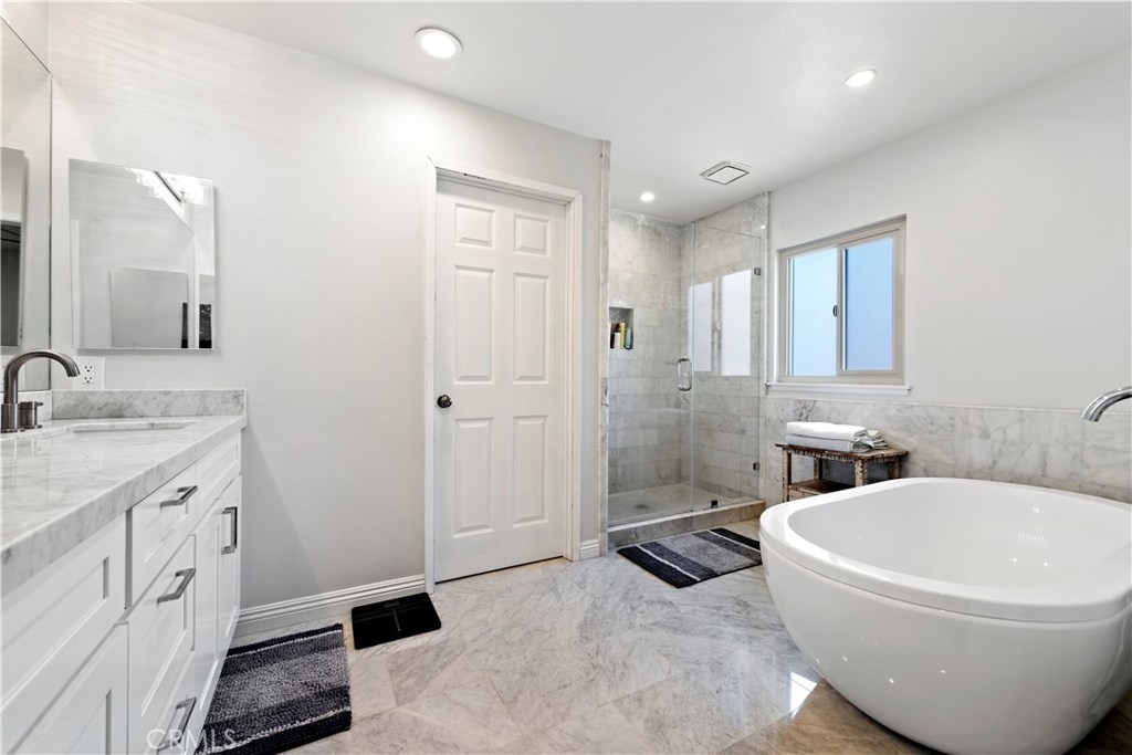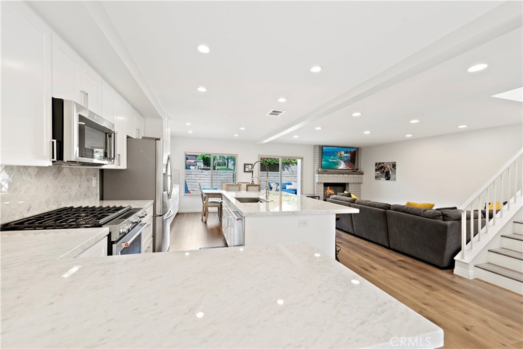 Don’t miss this luxurious home in the beautiful Dana Point! Professionally designed and fully remodeled with $130,000 in upgrades to give you the ideal indoor and outdoor living experience. Step onto the sleek kitchen's gray laminate flooring to find the newly installed oversized Carrara marble island and countertops, along with new Kohler sinks, fixtures, and recessed lighting. Modern white shaker cabinets envelope the new high-end stainless steel KitchenAid appliances. The intricate mosaic back splash lies at the heart of the kitchen. Moving on to the living room, you'll discover a charming custom fireplace and mantle, perfect for relaxation. New Pella doors and windows brightens up the space with natural light. Stroll into the the elegant custom master bathroom to find sophisticated Carrara marble on the walls and floor. An opulent stand alone bath tub completes this spa-like environment. All bathrooms in this home feature Cararra marble flooring, Kohler sinks and fixtures. All bedrooms are comprised of contemporary custom closets and cabinetry. Head outside to the backyard for the perfect spot to entertain friends, family, and kids. Emerald green turf accents this outdoor space. Travelling from the beach to the mountains has never been easier. This home is only 2 miles away from Doheny State Beach and has a private entrance to the San Juan Creek Trail. Schedule a private tour today!