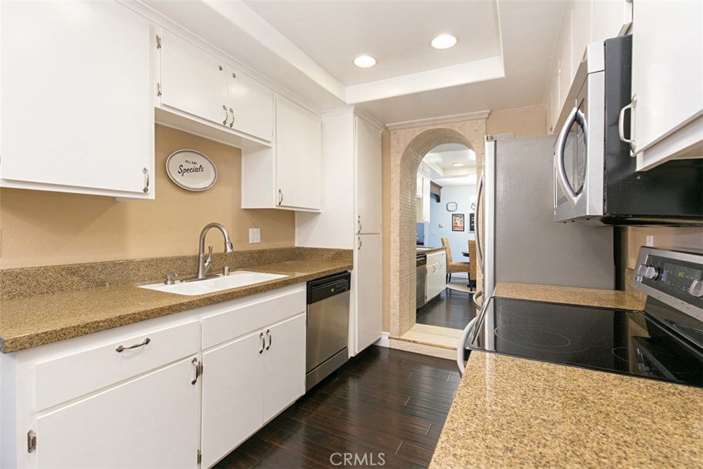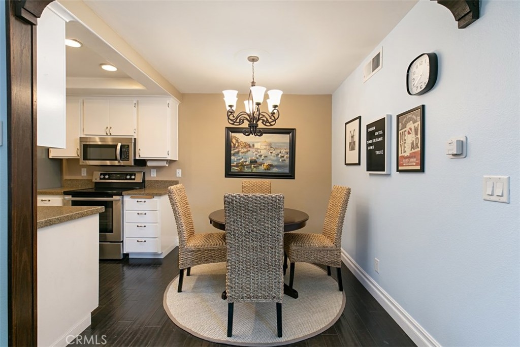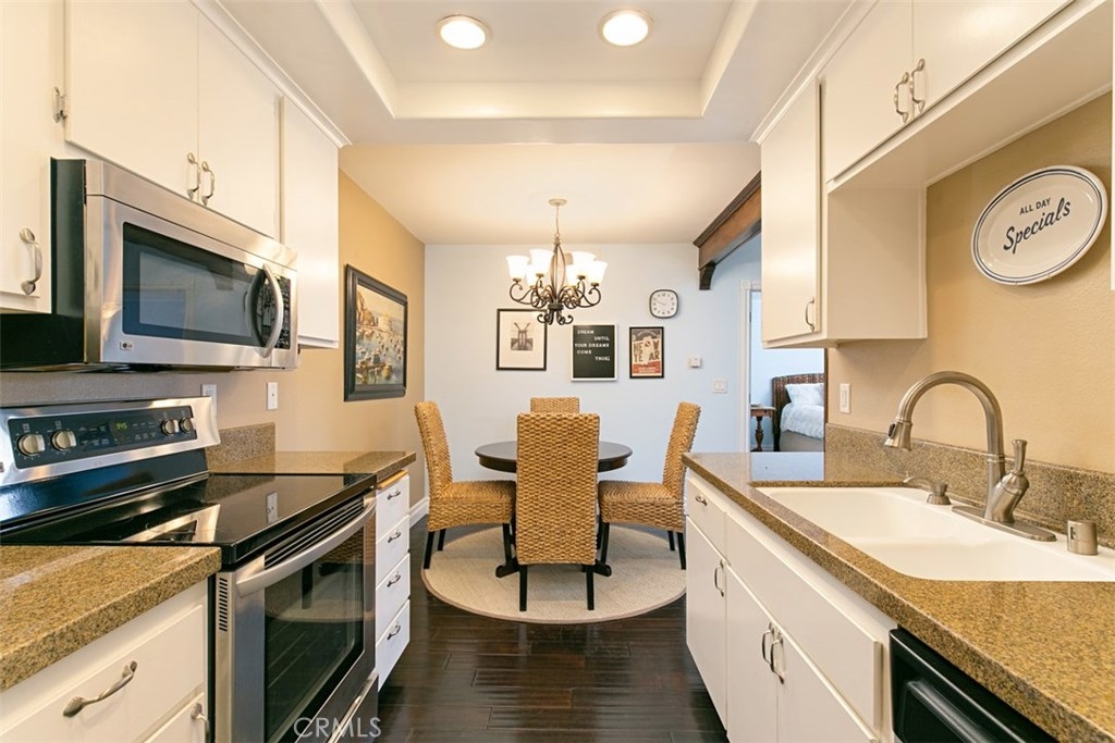 Walk to Doheny Beach area and more from this upper end-unit, with a peek-a-boo ocean view! FURNISHED with updates throughout. A great for investment, 2nd Home, or first-time buyers. Vaulted ceiling Living Room. French doors to the Master Bedroom with ensuite Bathroom. The kitchen is set with stainless steel appliances updated counters and lighting. Bonus: there is an enormous storage space in the attic, accessible with the attached pull-down ladder. Cul-de-sac location enclosed by tree-lined grass. Spinnaker Run Association includes pool and spa, water, heat, hot water, and trash! "Harbor the Good Life" from this peaceful cul-de-sac location, next to trails, parks, walkable to Doheny Beach, Town Center, and Dana Point Harbor.