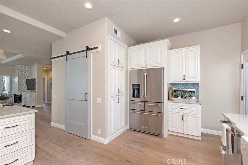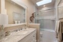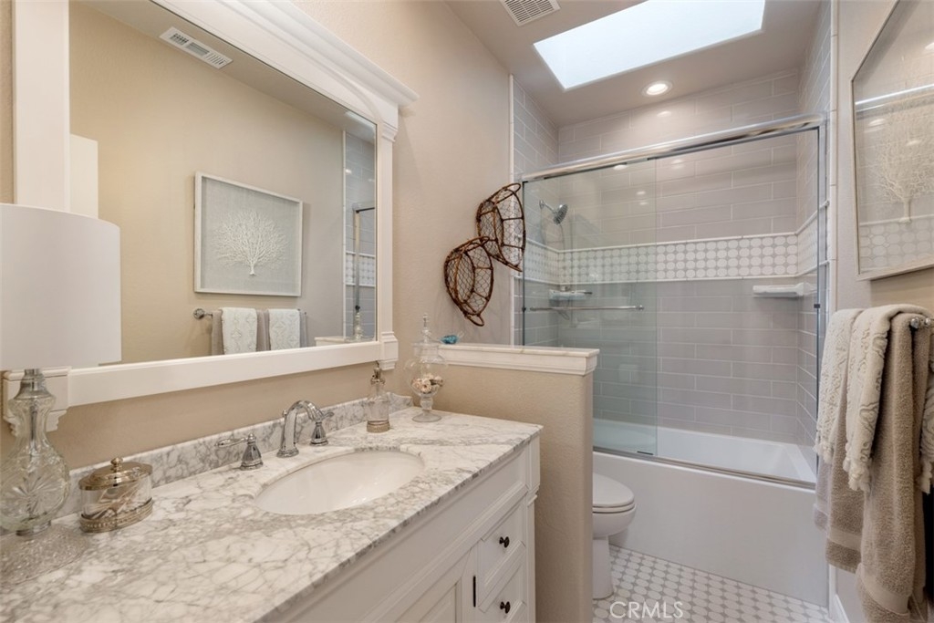 Stunning end unit upper condo sitting on the golf course. This recently renovated unit is amazing! Laundry room has been moved and now in different location with barn doors. A pillar was removed in living room and entryway. Wall was removed between kitchen and entry leaving this a great room concept. Flooring is high end birch color. Fireplace in the living room is magnificent. Private golf course patio area with access thru new French doors. Master bedroom also has patio access. No homes sit directly behind this unit. I can't even describe how beautiful this unit is! All new doors and windows. Kitchen with new cabinets, glass back splash and quartz counter tops also has a patio area for BBQ’s. Gas stove top. His and Hers sinks in master, walk-in closet, plus addition closet area. Formal dining room and bar stool dining. 2 car garage, gated community across from the Waldorf Astoria Resort and Links golf course across the street. There is a community pool, however tennis courts are separate membership.
