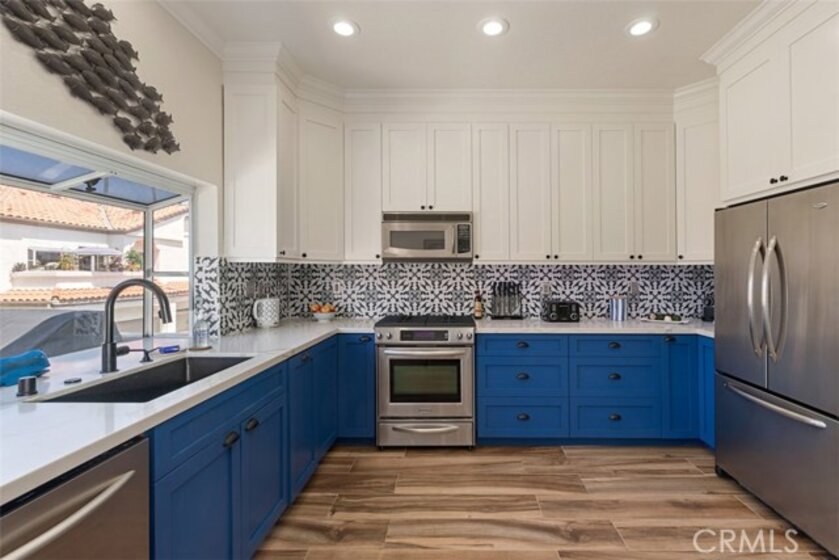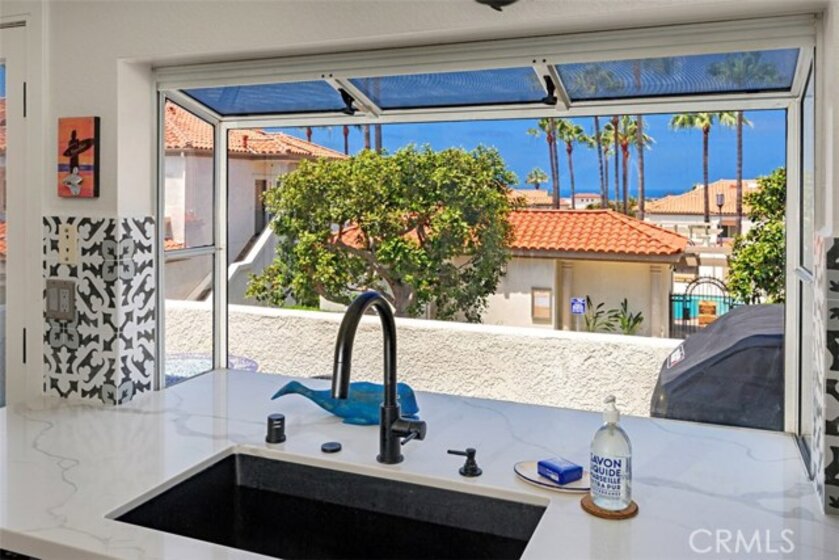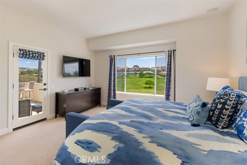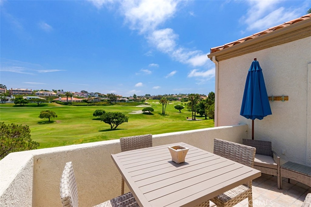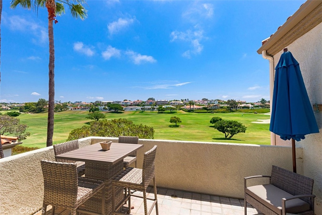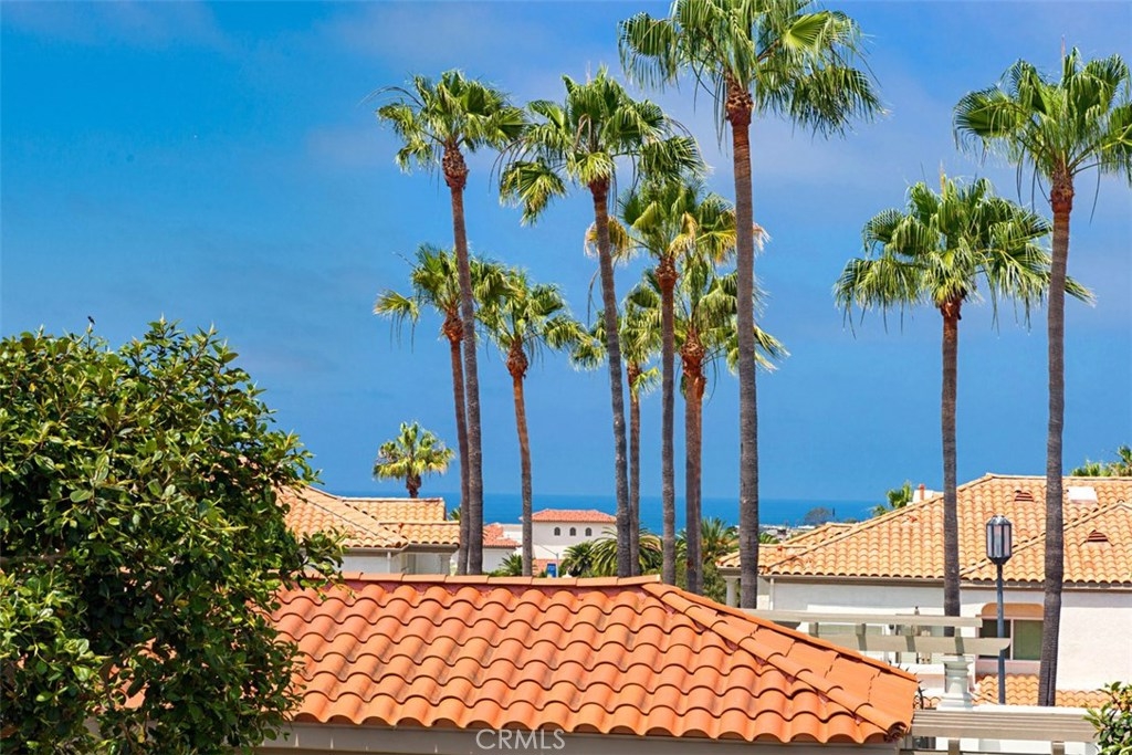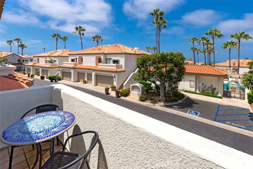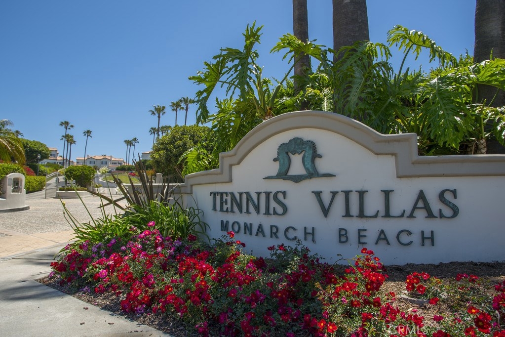 Gorgeous and beautifully remodeled upper level condominium in Monarch Beach's prestigious gated Tennis Villas neighborhood. This luxurious beach retreat was transformed into a modern, chic penthouse with a true resort vibe. Enjoy amazing vistas of the Monarch Links Golf Course on the 16th fairway from the primary bedroom, living room and balcony, plus a fabulous ocean and sunset view from the kitchen and west facing balcony. This property was nearly completely renovated in late-2017 with porcelain wood floors, modern updated lighting, solid core doors, completely remodeled kitchen with beautiful quartz counters, designer tile backsplash, appliances, sink and cabinetry plus recently painted (2025). Immaculate remodeled bathrooms include walk-in shower in primary bathroom, quartz counters, sinks, faucets and fixtures; plus, shower & tub in guest bathroom. Quiet, peaceful, sunny location with the benefit of both golf course and ocean-sunset views! Steps to association pool and spa, spacious two-car garage with new epoxy flooring and walking distance to the Tennis Club at Monarch Beach, the Waldorf Astoria Resort & Spa, Salt Creek Beach and the Ritz Carlton Resort. In Dana Point Harbor you'll enjoy endless ocean activities, plus nearby is the Strand Beach Park with walking trails, steps down to the sand and beautiful ocean views. Laguna Beach is minutes away offering amazing restaurants, shops, art galleries and world famous beaches. This special property has one of the most beautiful views and pristine settings in the community.