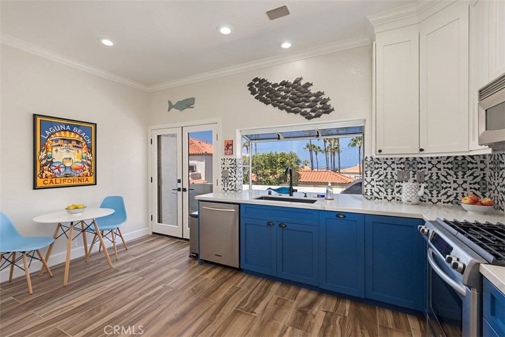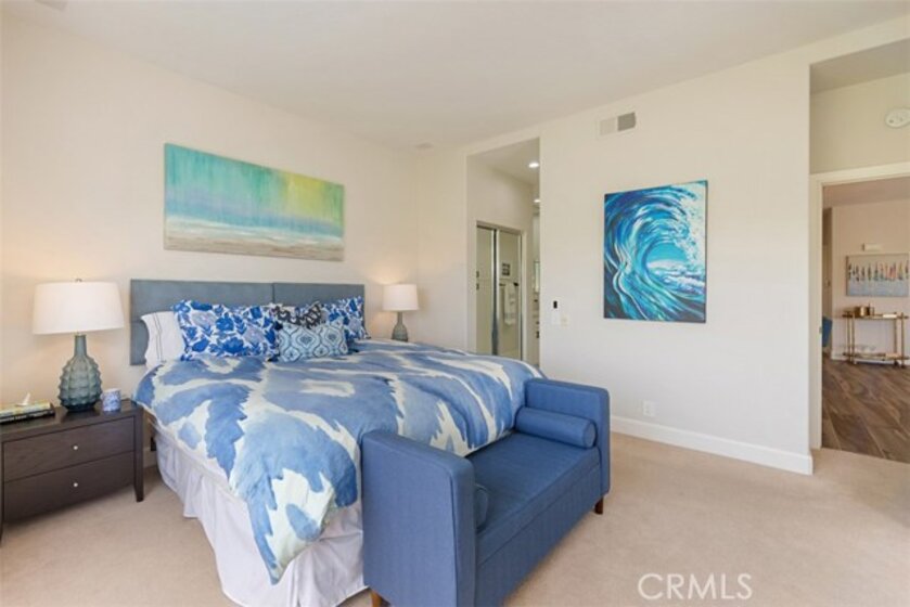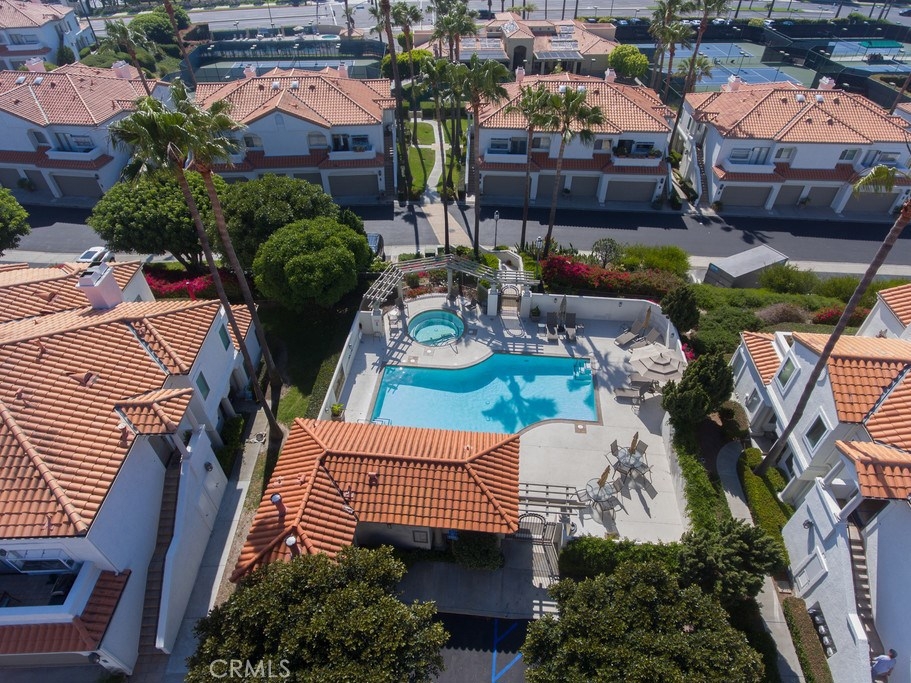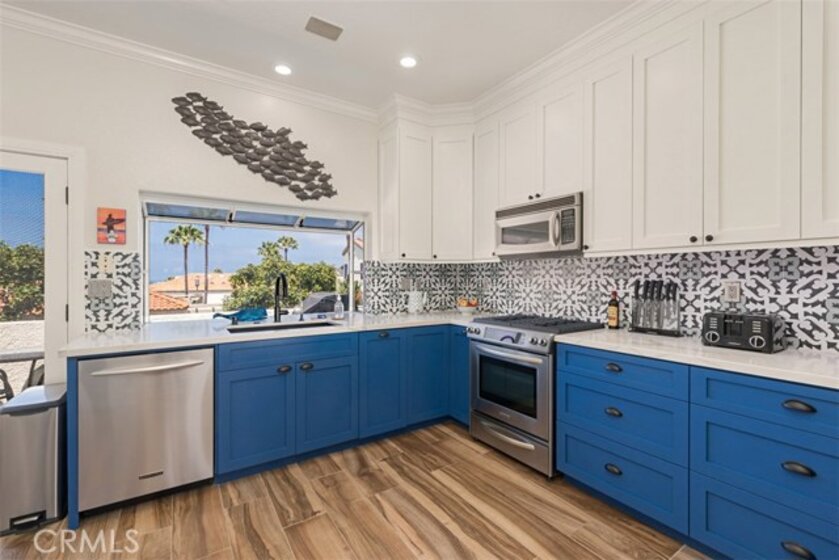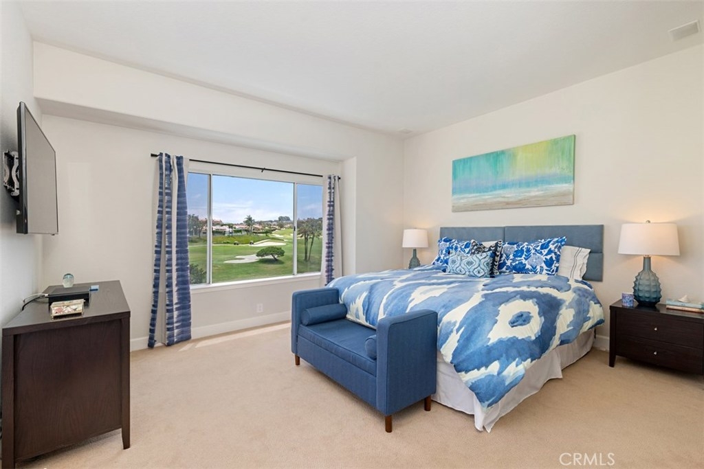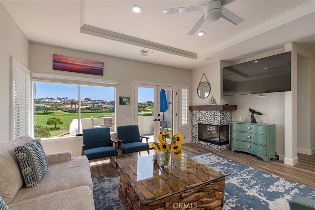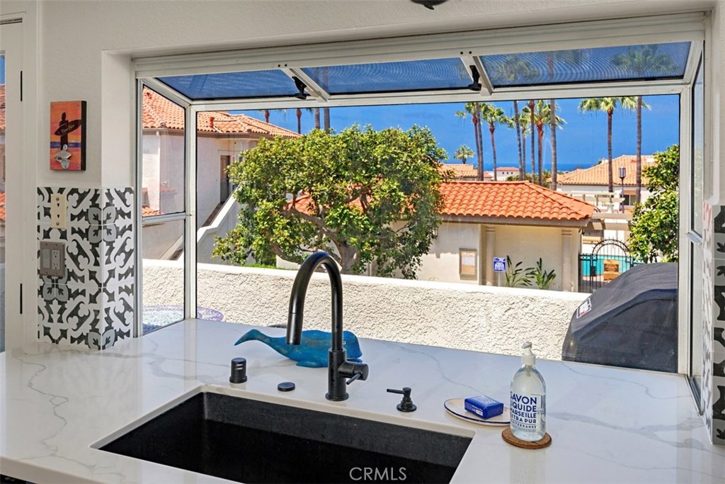 Gorgeous and beautifully remodeled upper level condominium in Monarch Beach's prestigious gated Tennis Villas neighborhood. This luxurious beach retreat was transformed into a modern, chic penthouse with a true resort vibe. Enjoy amazing vistas of the Monarch Links Golf Course on the 16th fairway from the primary bedroom, living room and balcony, plus a fabulous ocean and sunset view from the kitchen and west facing balcony. This property was nearly completely renovated in late-2017 with porcelain wood floors, modern updated lighting, solid core doors, completely remodeled kitchen with beautiful quartz counters, designer tile backsplash, appliances, sink and cabinetry plus recently painted (2025). Immaculate remodeled bathrooms include walk-in shower in primary bathroom, quartz counters, sinks, faucets and fixtures; plus, shower & tub in guest bathroom. Quiet, peaceful, sunny location with the benefit of both golf course and ocean-sunset views! Steps to association pool and spa, spacious two-car garage with new epoxy flooring and walking distance to the Tennis Club at Monarch Beach, the Waldorf Astoria Resort & Spa, Salt Creek Beach and the Ritz Carlton Resort. In Dana Point Harbor you'll enjoy endless ocean activities, plus nearby is the Strand Beach Park with walking trails, steps down to the sand and beautiful ocean views. Laguna Beach is minutes away offering amazing restaurants, shops, art galleries and world famous beaches. This special property has one of the most beautiful views and pristine settings in the community.