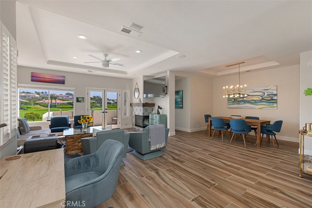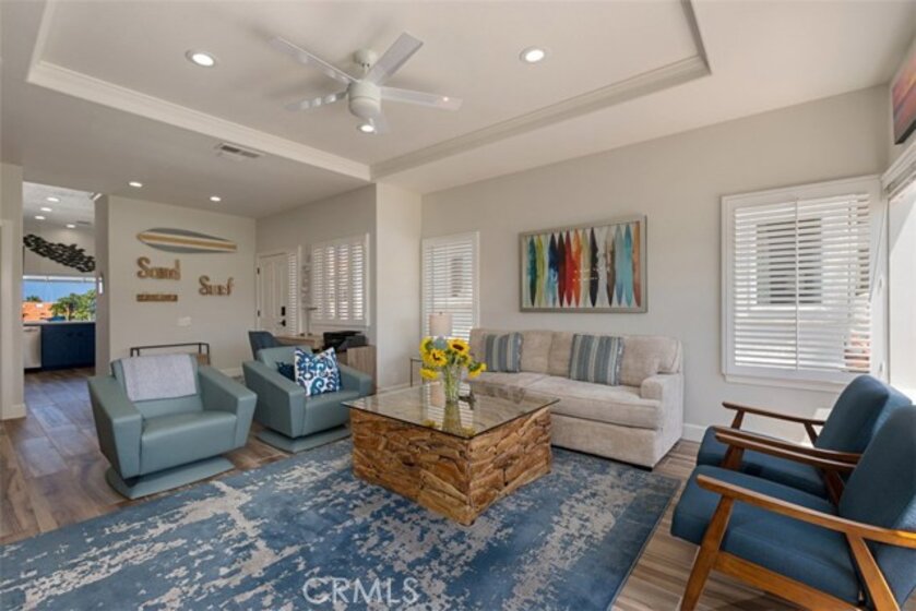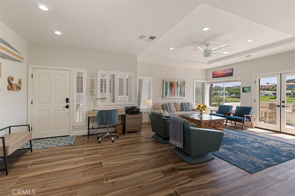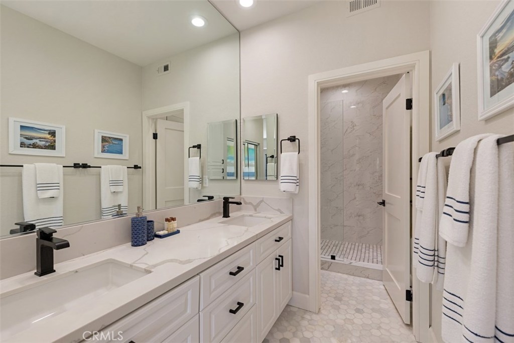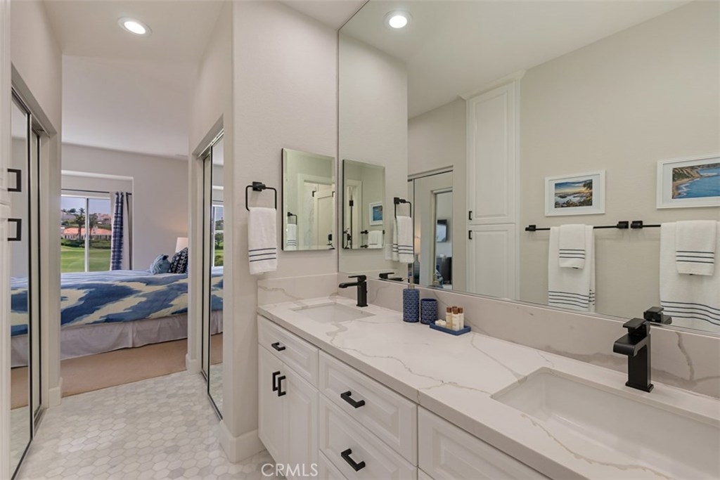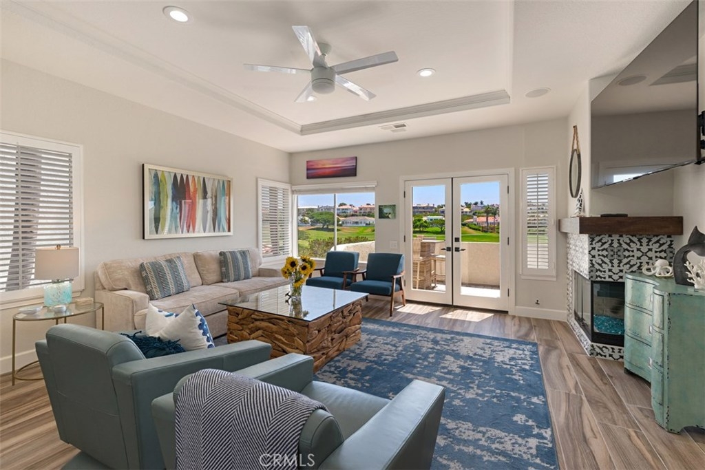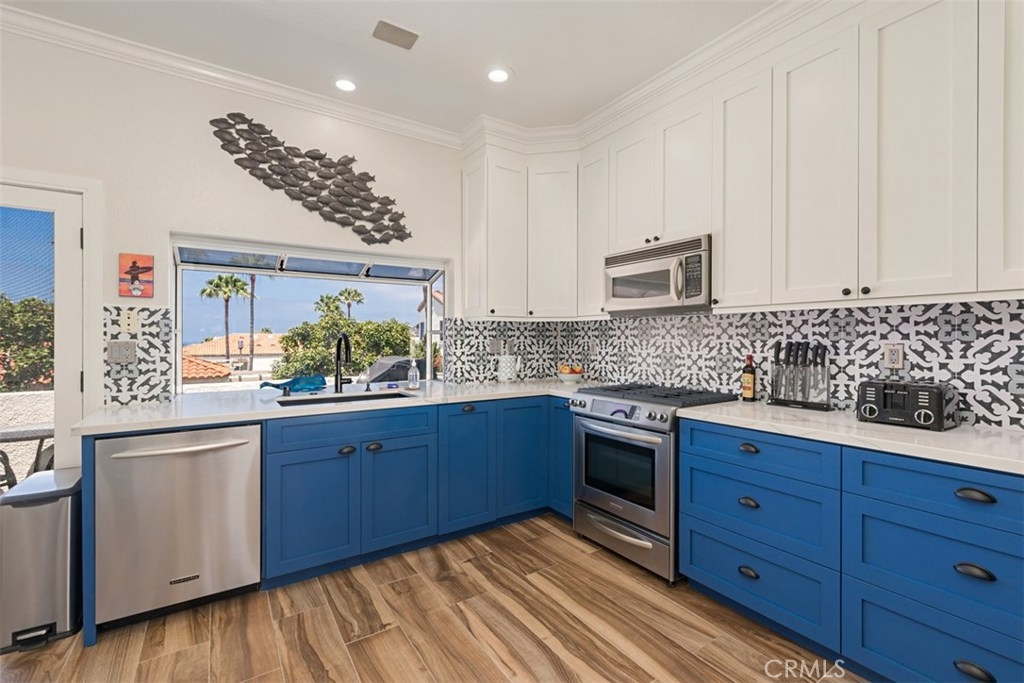 Gorgeous and beautifully remodeled upper level condominium in Monarch Beach's prestigious gated Tennis Villas neighborhood. This luxurious beach retreat was transformed into a modern, chic penthouse with a true resort vibe. Enjoy amazing vistas of the Monarch Links Golf Course on the 16th fairway from the primary bedroom, living room and balcony, plus a fabulous ocean and sunset view from the kitchen and west facing balcony. This property was nearly completely renovated in late-2017 with porcelain wood floors, modern updated lighting, solid core doors, completely remodeled kitchen with beautiful quartz counters, designer tile backsplash, appliances, sink and cabinetry plus recently painted (2025). Immaculate remodeled bathrooms include walk-in shower in primary bathroom, quartz counters, sinks, faucets and fixtures; plus, shower & tub in guest bathroom. Quiet, peaceful, sunny location with the benefit of both golf course and ocean-sunset views! Steps to association pool and spa, spacious two-car garage with new epoxy flooring and walking distance to the Tennis Club at Monarch Beach, the Waldorf Astoria Resort & Spa, Salt Creek Beach and the Ritz Carlton Resort. In Dana Point Harbor you'll enjoy endless ocean activities, plus nearby is the Strand Beach Park with walking trails, steps down to the sand and beautiful ocean views. Laguna Beach is minutes away offering amazing restaurants, shops, art galleries and world famous beaches. This special property has one of the most beautiful views and pristine settings in the community.