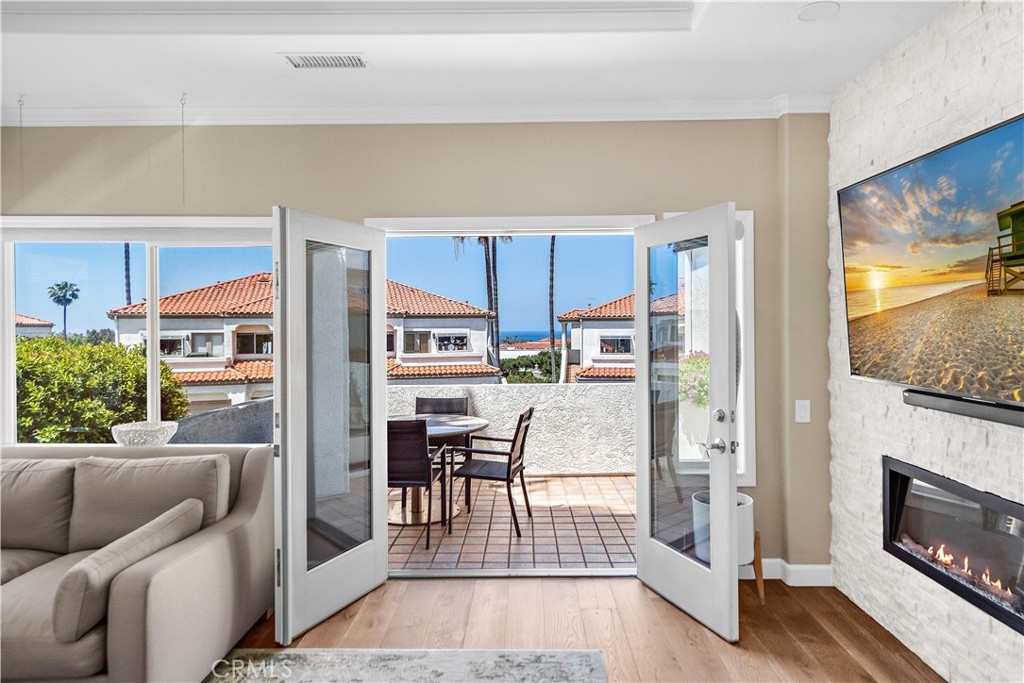 Welcome to a reimagined masterpiece at 65 Centre Court, where coastal elegance meets unparalleled luxury in the heart of Monarch Beach. This ocean view condo, nestled amidst the lush greens of the Monarch Beach Golf Course and just across from the renowned Waldorf Astoria, offers a lifestyle of sophistication and tranquility. Step into a world where every detail has been artfully designed to elevate your living experience. The chef’s kitchen is a culinary artist's dream, featuring a 42” Subzero refrigerator, a 36” Bertazoni Professional range, and a Bosch dishwasher. Luxurious touches abound with a reverse osmosis water system, soft-close cabinets, and a spice pantry that inspires gourmet creations. The living space unfolds into a striking open-concept area, adorned with beautiful engineered wood floors and a dramatic white Carrera marble wall, which sets the stage for the modern 60” electric smart fireplace. Here, your lifestyle seamlessly integrates with the natural beauty outside, as one of two private balconies extends from the living room, offering a serene spot to soak in panoramic ocean views and gentle sea breezes. The balcony is outfitted with a sophisticated retractable awning, designed to provide optimal shade and comfort with its wind sensor mechanism. Additionally, retractable screens offer and insect free environment. Retreat to the master suite, a sanctuary of opulence and comfort, where doors open to reveal a personal oasis. Discover a California Closet dressing room adorned with a closet valet, integrated hamper, and a chandelier that casts a soft glow over your wardrobe. The suite's private balcony invites you to unwind, enjoying tranquil mornings or starlit evenings with the ocean as your backdrop. The condo also features a private laundry room equipped with a new LG Washer/Dryer Tower, adding convenience to luxurious living. Throughout this extraordinary home, thoughtful upgrades enhance every corner—from double-paned windows and elegant blinds to hidden gems waiting to be discovered. Ideally located within a short stroll of fine dining, upscale shopping, and pristine beaches, this condo is more than a residence; it's a bespoke lifestyle crafted for those who appreciate the finer things in life. Experience the epitome of luxury living at 65 Centre Court, where two private balconies, breathtaking views, and exquisite design converge to create your dream coastal retreat. Your new life of elegance and serenity awaits.