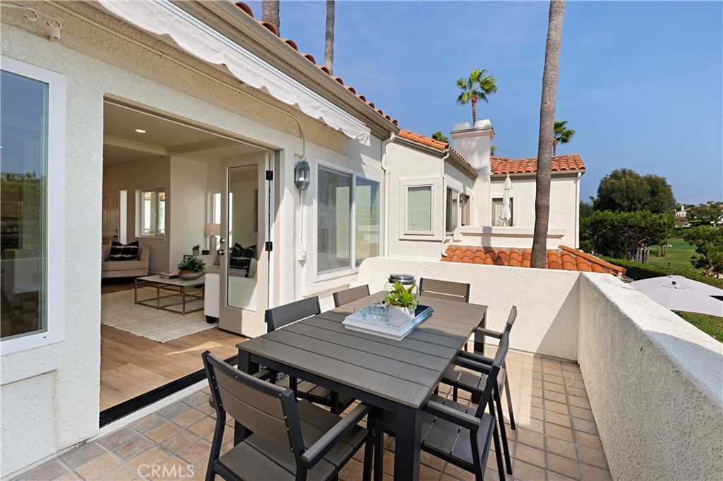 Beautifully remodeled luxury villa located in a premium location overlooking the 15th Fairway and Green of Monarch Beach Golf Links with ocean views. This 2 bedroom, 2 bath, 1357 square foot home boasts an abundance of natural light and an open single-level floor plan on an upper level. It has brand new appliances, designer plumbing fixtures and finishes, soft close cabinets and drawers, quartz counter tops, lighting, luxury plank vinyl flooring, and a gorgeous stacked stone fireplace. It also has newer vinyl windows, top-of-the-line HVAC system and 2 car garage with electric charging hookup. The spacious main patio has an electric retractable awning providing wonderful shade as you sit and sip and watch the golfers go by. The sun sets over the ocean directly off the kitchen balcony most nights during the year. Tennis Villas is an incredibly peaceful, gated resort-like community with a lovely pool and spa, plenty of guest parking and walking distance to the Waldorf Astoria, Ritz Carlton resorts and famed Salt Creek Beach. Dana Point Harbor with its quaint restaurants and shopping is just minutes away. This is resort living at it’s best!