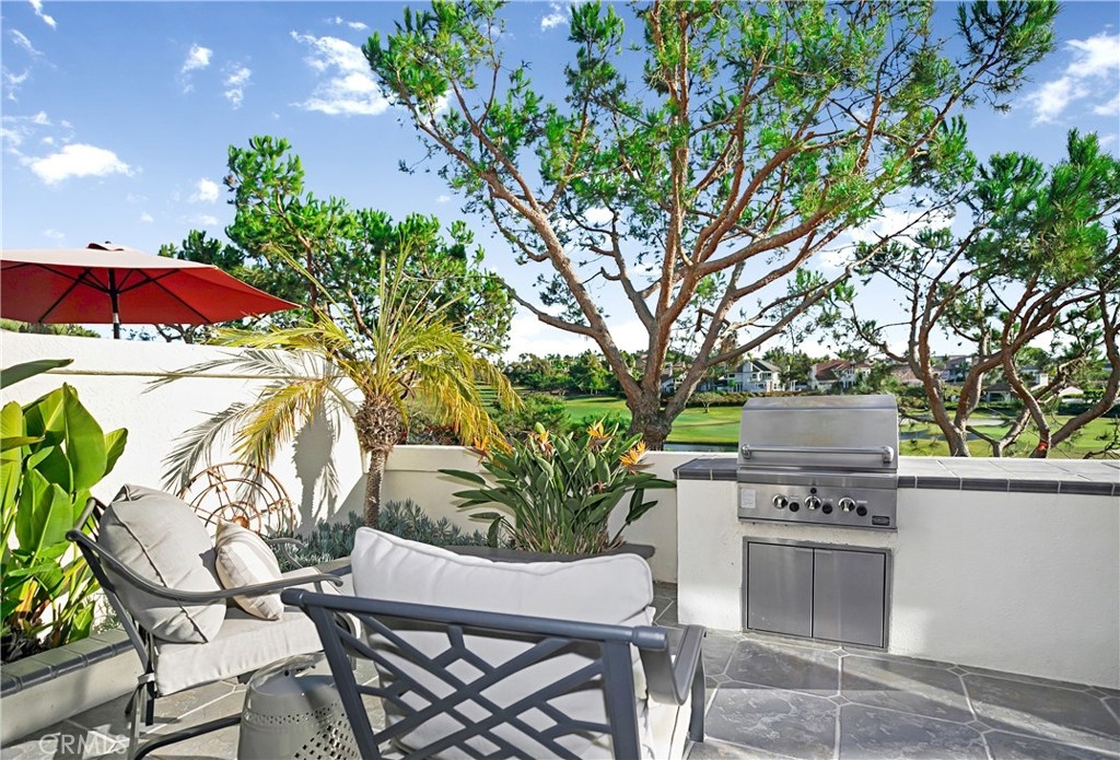 Outstanding golf course location in the prestigious Monarch Beach area. This Tennis Villa Condo provides beautiful, panoramic views of the golf course, no roof tops- one of the best locations in the complex. Entire home was just remodeled! An abundance of windows provides plenty of natural light. The living room has a stunning stone wall with fireplace and built in flat screen TV, which flows into the dining area. The modern kitchen has quartz counters, built-in ovens & convection oven/microwave, separate cooktop and stainless steel hood. The expansive master bedroom opens to the patio area with built-in BBQ and seating area with 180 degree view of the Golf course. Resort style living located across from the Monarch Beach Resort, formerly St. Regis, Tennis Club, Monarch Links Golf Course, hiking trails down to Salt Creek Beach. Nearby Dana Point Harbor, Laguna Beach, and fabulous restaurants and shopping!