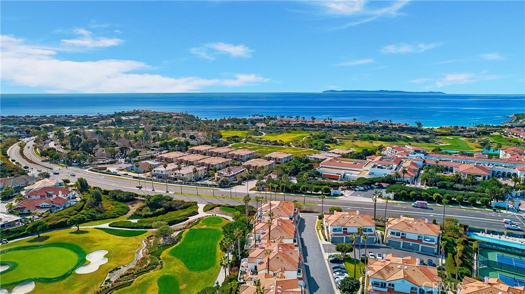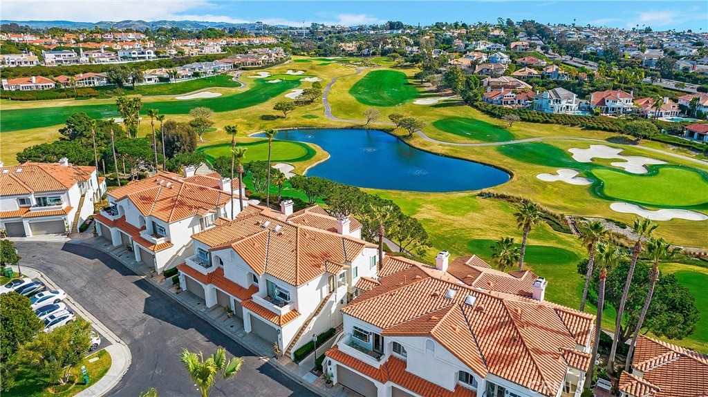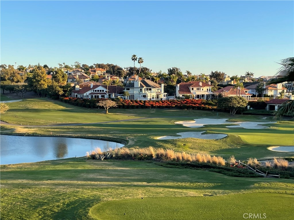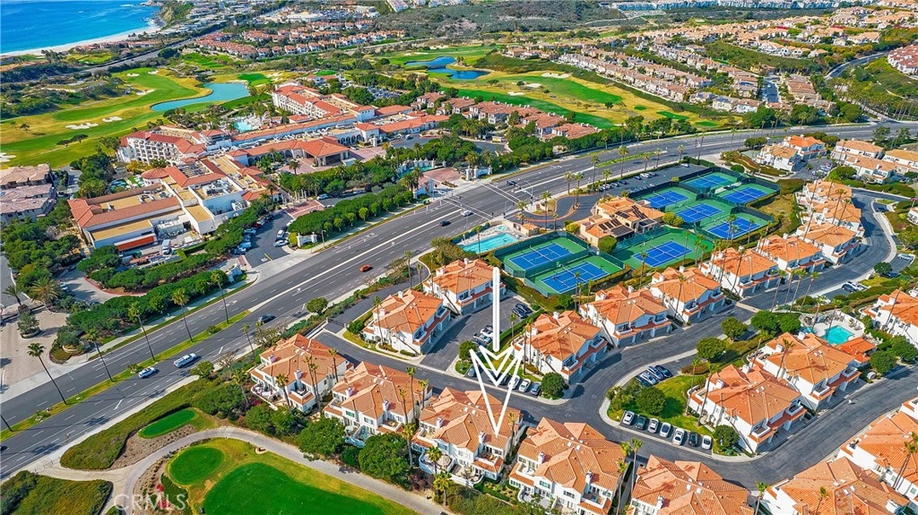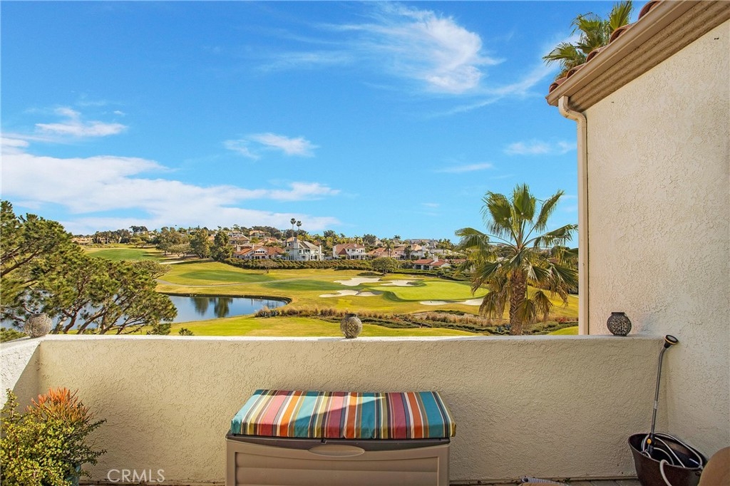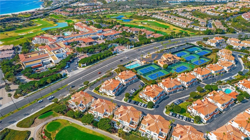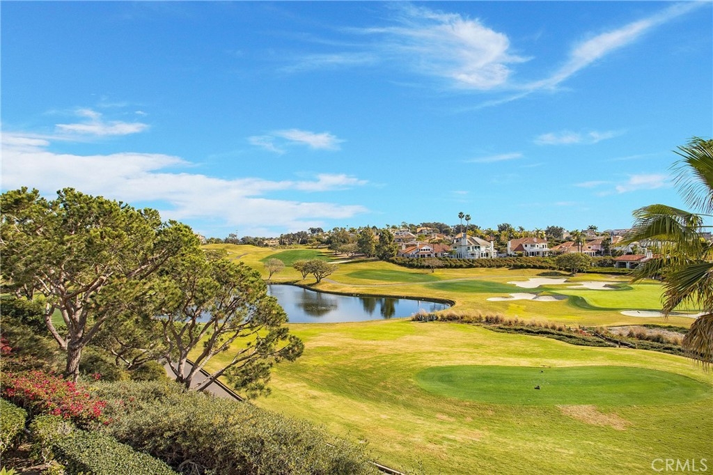 Sunrise, sunset! Awaken to the sunrise reflecting off the lake on Monarch Beach Links Golf Course as you gaze from your Master bedroom down the 15th fairway. Enjoy the sunset over Catalina while sipping a cocktail on the ocean-view deck at the end of the day. #88 Tennis Villas offers some of the best views in The Tennis Villas! Delivering resort living at it's finest, this one-level, open plan concept features an abundance of natural light plus golf course views, high ceilings, luxurious pillars, Plantation shutters, golden brown laminate floors and a floor to ceiling fireplace with colorful fire glass. French doors open onto a large view deck where you can enjoy egrets and seagulls dip and soar and you're bound to hear a golfer's excitement following a great shot at least once a day. The upgraded kitchen offers quartz counters, inlaid tile backsplash and tile floor plus updated appliances, painted expresso cabinets and a second dining area that opens to an ocean-view balcony. Spacious Primary bedroom features single door to the golf course view deck & windows that allow you to enjoy lovely sunrises. Primary bath has been updated as well with quartz topped vanity & dual sinks plus dual closets with customized walk-in and reach-in upgrades from California closets. Large secondary bedroom is painted with warm, cheerful colors and is adjacent to another updated full bath. The 2-car garage with epoxy flooring is located just down the outside steps and there is plenty of guest parking just across the way. Association offers a luxurious pool and spa and the property is located adjacent to Monarch Beach Tennis Club. Cross the street and you're at the world renowned Waldorf Astoria Resort plus walking trails to Salt Creek Beach. Ritz Carlton is also down the street plus Dana Point Harbor is a 5 minute drive away. All this and more await you at 88 Tennis Villas, your private resort retreat by the beach.
