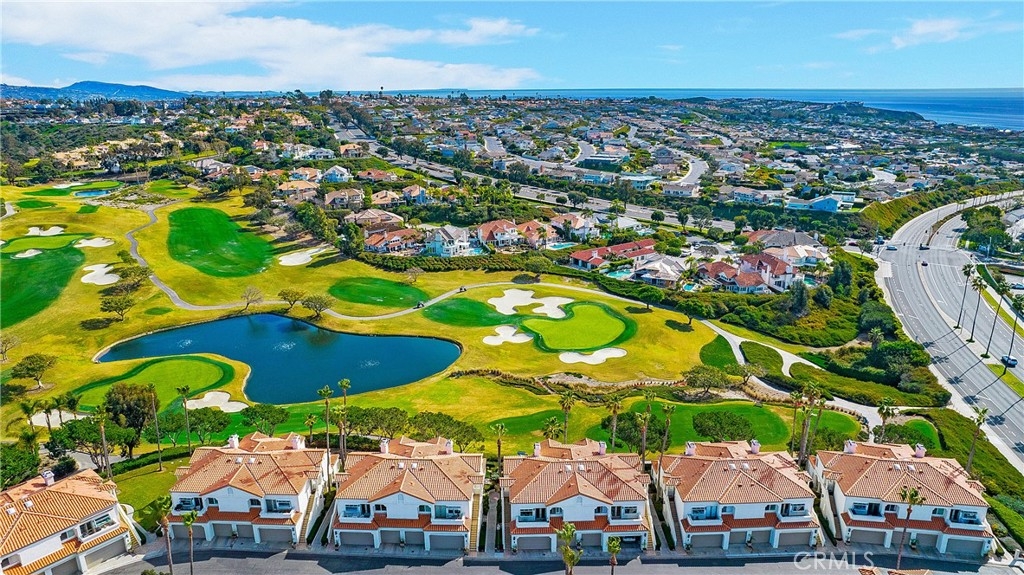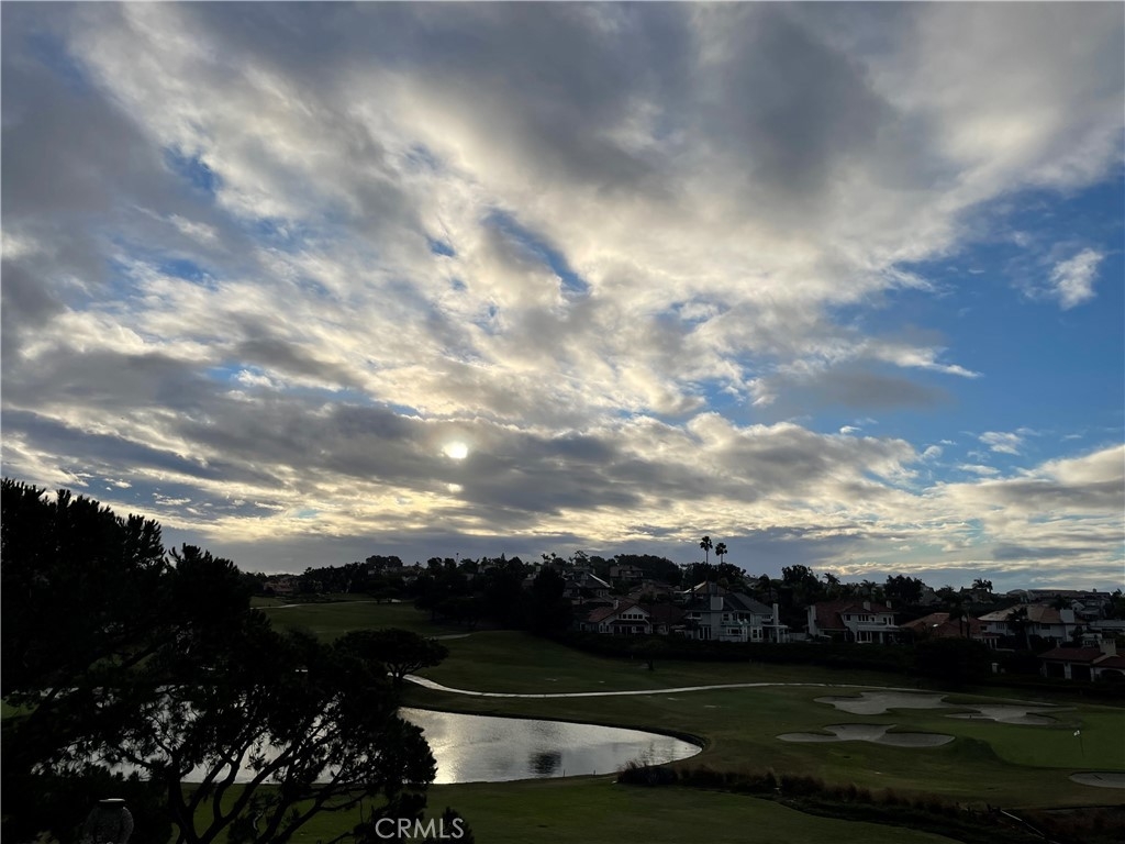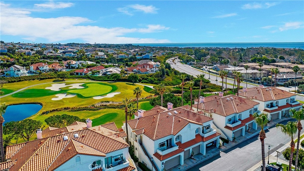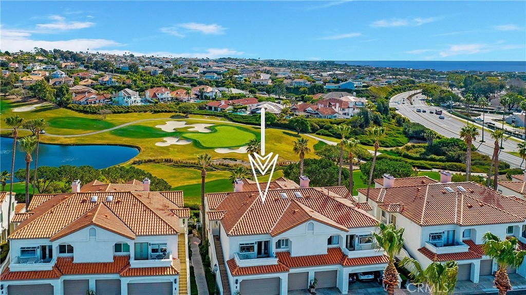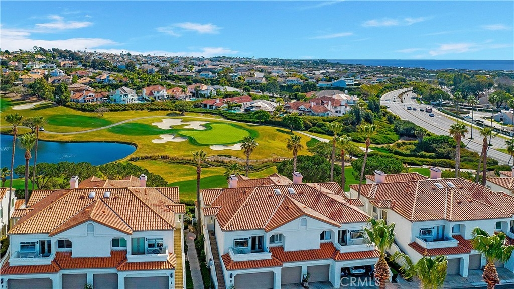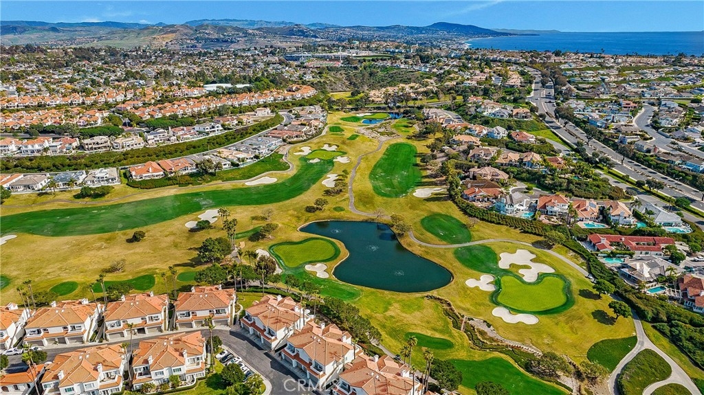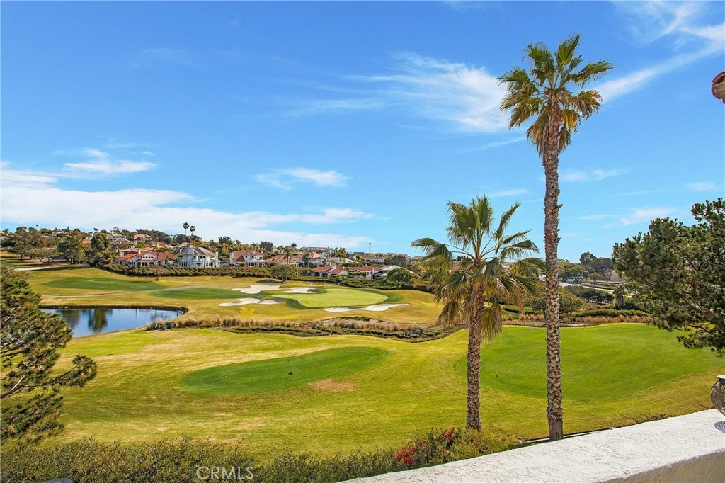 Sunrise, sunset! Awaken to the sunrise reflecting off the lake on Monarch Beach Links Golf Course as you gaze from your Master bedroom down the 15th fairway. Enjoy the sunset over Catalina while sipping a cocktail on the ocean-view deck at the end of the day. #88 Tennis Villas offers some of the best views in The Tennis Villas! Delivering resort living at it's finest, this one-level, open plan concept features an abundance of natural light plus golf course views, high ceilings, luxurious pillars, Plantation shutters, golden brown laminate floors and a floor to ceiling fireplace with colorful fire glass. French doors open onto a large view deck where you can enjoy egrets and seagulls dip and soar and you're bound to hear a golfer's excitement following a great shot at least once a day. The upgraded kitchen offers quartz counters, inlaid tile backsplash and tile floor plus updated appliances, painted expresso cabinets and a second dining area that opens to an ocean-view balcony. Spacious Primary bedroom features single door to the golf course view deck & windows that allow you to enjoy lovely sunrises. Primary bath has been updated as well with quartz topped vanity & dual sinks plus dual closets with customized walk-in and reach-in upgrades from California closets. Large secondary bedroom is painted with warm, cheerful colors and is adjacent to another updated full bath. The 2-car garage with epoxy flooring is located just down the outside steps and there is plenty of guest parking just across the way. Association offers a luxurious pool and spa and the property is located adjacent to Monarch Beach Tennis Club. Cross the street and you're at the world renowned Waldorf Astoria Resort plus walking trails to Salt Creek Beach. Ritz Carlton is also down the street plus Dana Point Harbor is a 5 minute drive away. All this and more await you at 88 Tennis Villas, your private resort retreat by the beach.