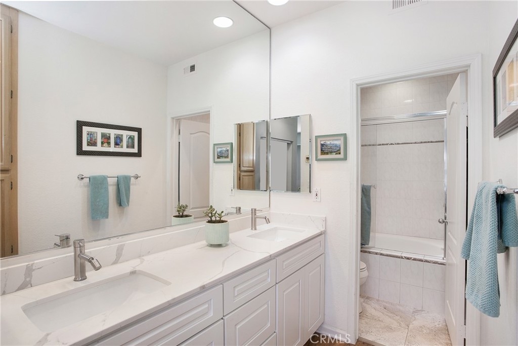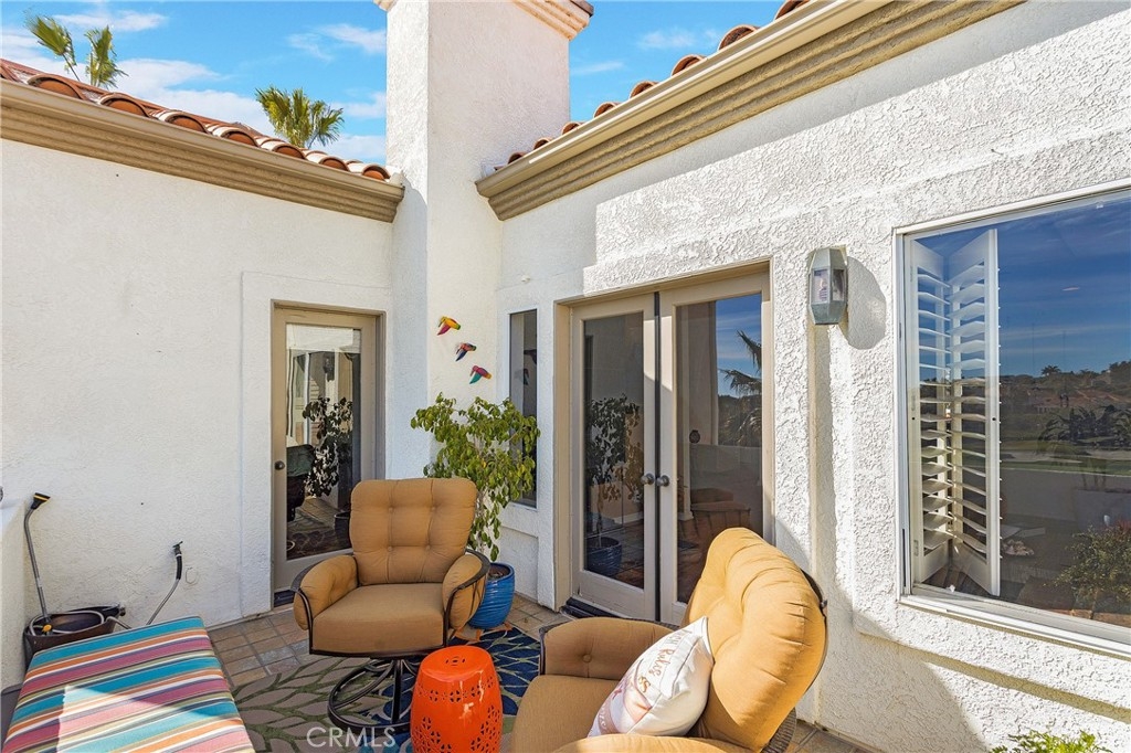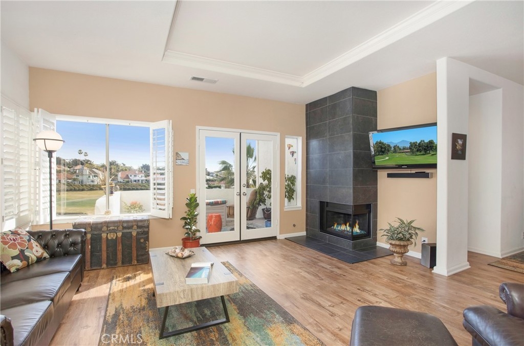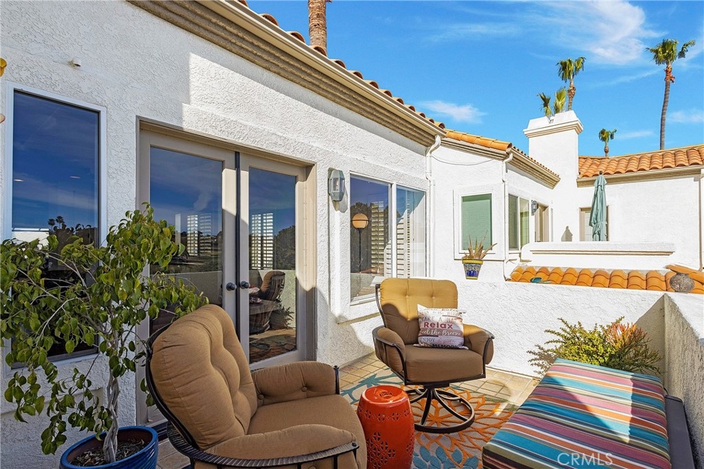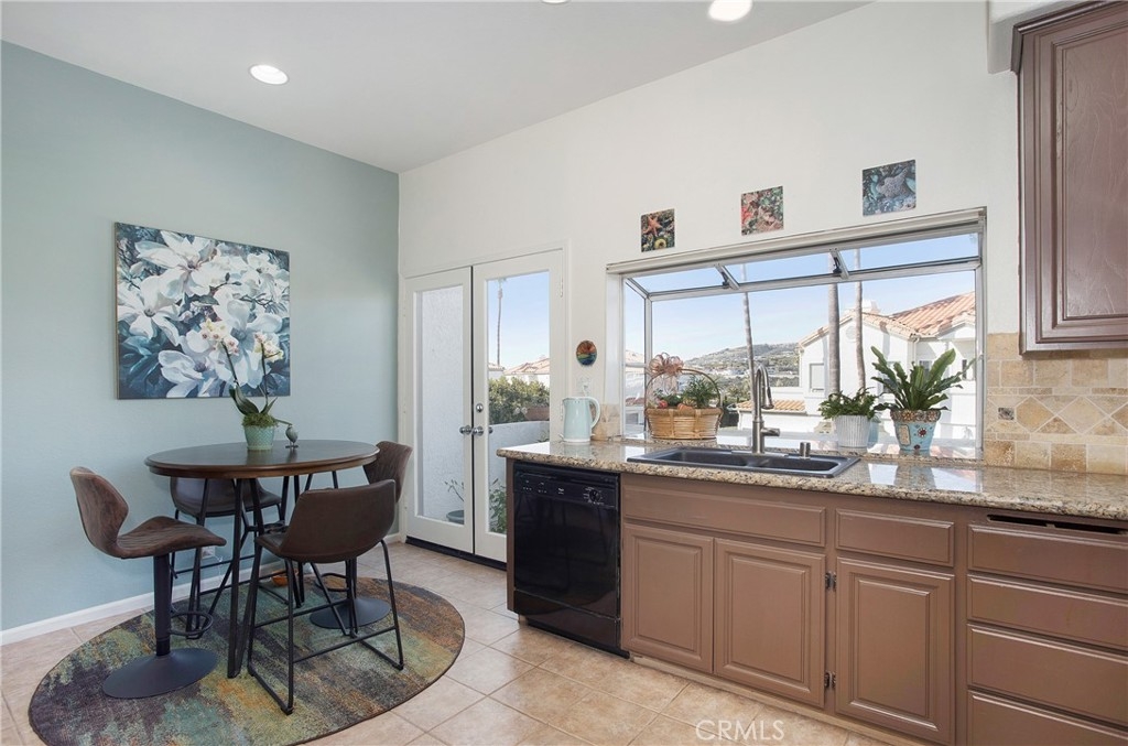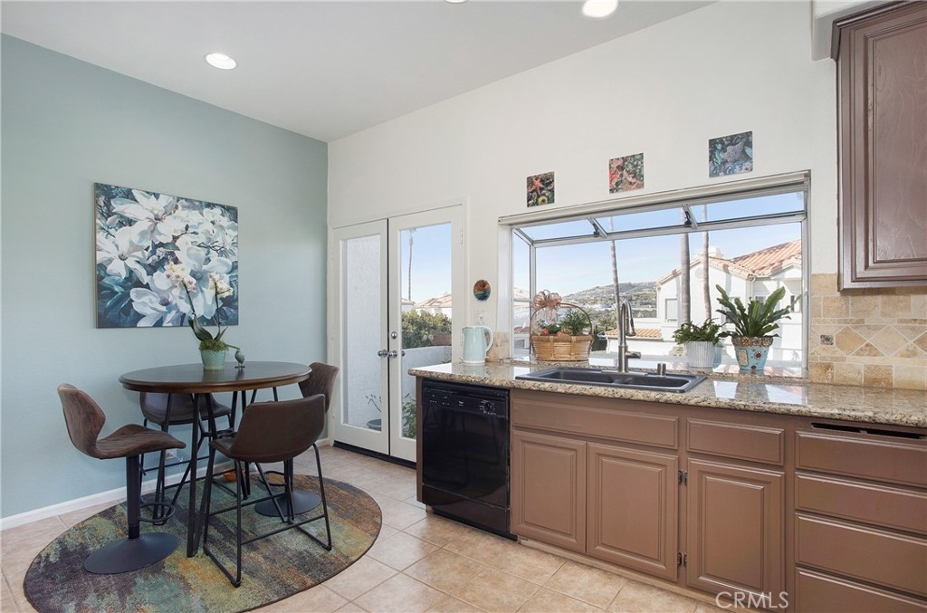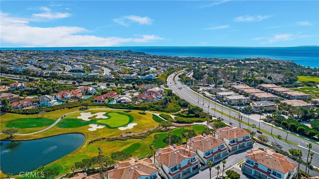 Sunrise, sunset! Awaken to the sunrise reflecting off the lake on Monarch Beach Links Golf Course as you gaze from your Master bedroom down the 15th fairway. Enjoy the sunset over Catalina while sipping a cocktail on the ocean-view deck at the end of the day. #88 Tennis Villas offers some of the best views in The Tennis Villas! Delivering resort living at it's finest, this one-level, open plan concept features an abundance of natural light plus golf course views, high ceilings, luxurious pillars, Plantation shutters, golden brown laminate floors and a floor to ceiling fireplace with colorful fire glass. French doors open onto a large view deck where you can enjoy egrets and seagulls dip and soar and you're bound to hear a golfer's excitement following a great shot at least once a day. The upgraded kitchen offers quartz counters, inlaid tile backsplash and tile floor plus updated appliances, painted expresso cabinets and a second dining area that opens to an ocean-view balcony. Spacious Primary bedroom features single door to the golf course view deck & windows that allow you to enjoy lovely sunrises. Primary bath has been updated as well with quartz topped vanity & dual sinks plus dual closets with customized walk-in and reach-in upgrades from California closets. Large secondary bedroom is painted with warm, cheerful colors and is adjacent to another updated full bath. The 2-car garage with epoxy flooring is located just down the outside steps and there is plenty of guest parking just across the way. Association offers a luxurious pool and spa and the property is located adjacent to Monarch Beach Tennis Club. Cross the street and you're at the world renowned Waldorf Astoria Resort plus walking trails to Salt Creek Beach. Ritz Carlton is also down the street plus Dana Point Harbor is a 5 minute drive away. All this and more await you at 88 Tennis Villas, your private resort retreat by the beach.