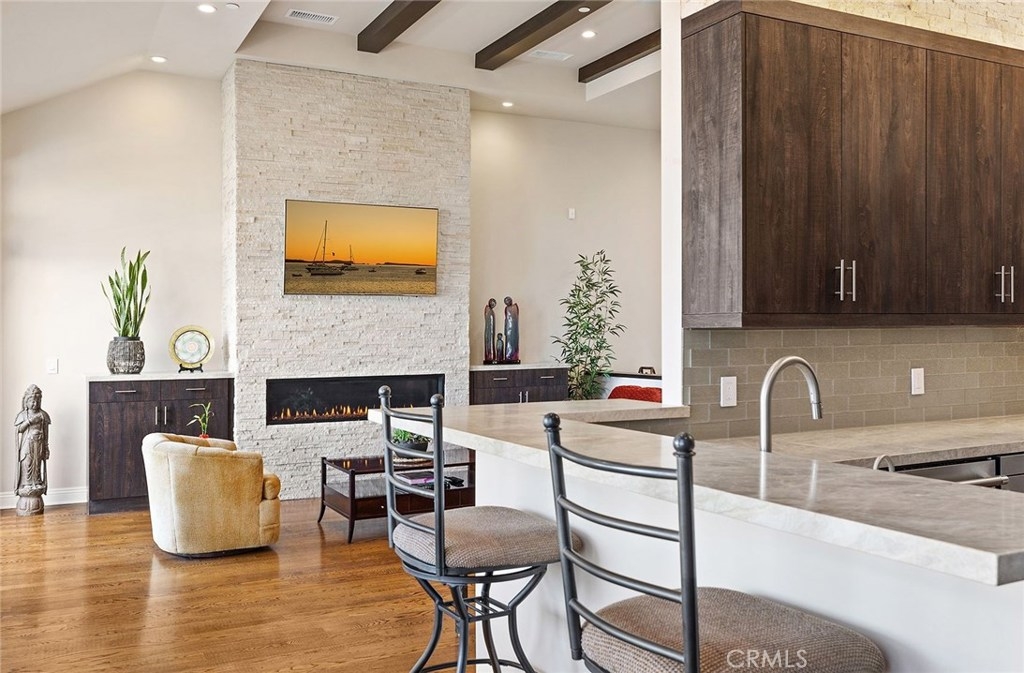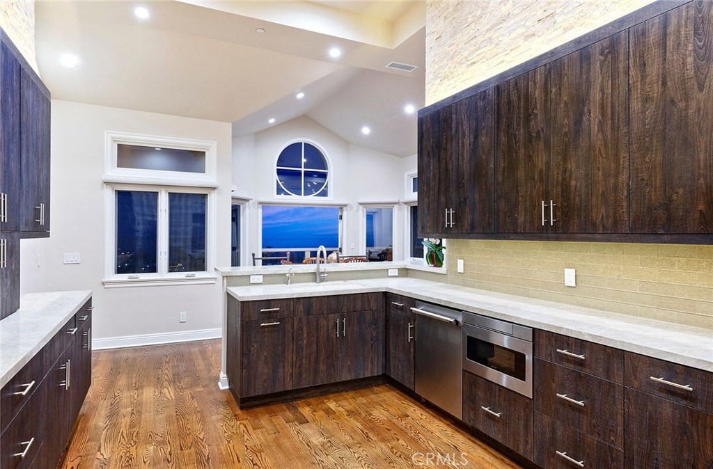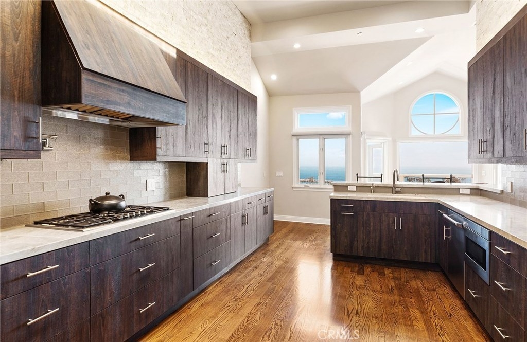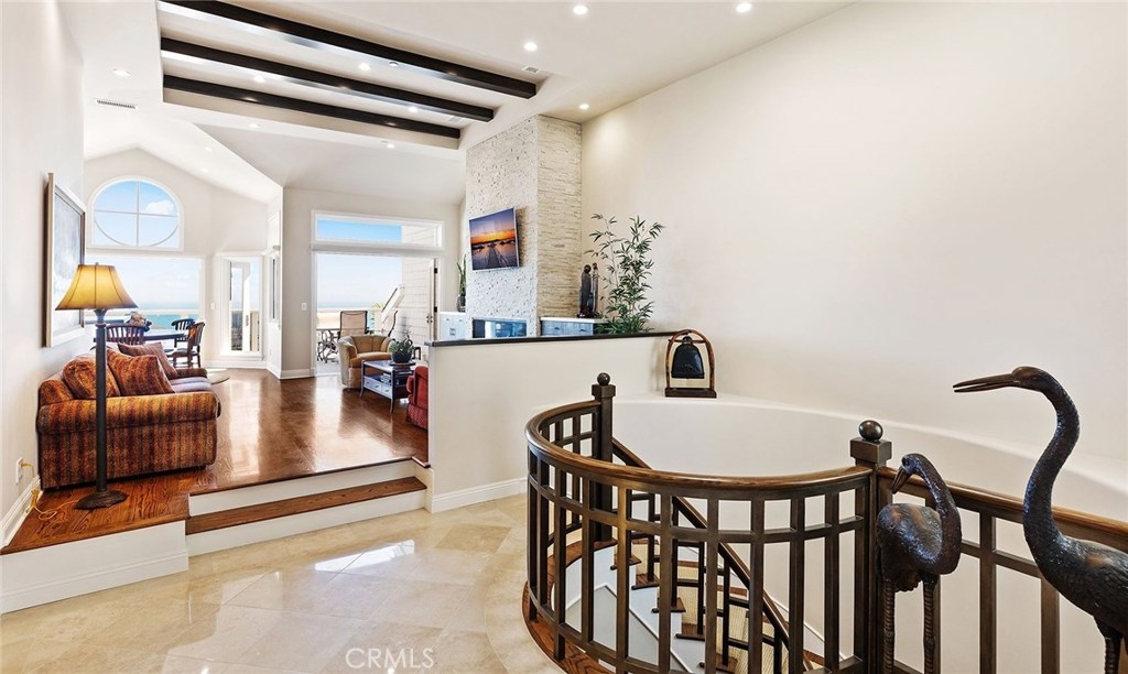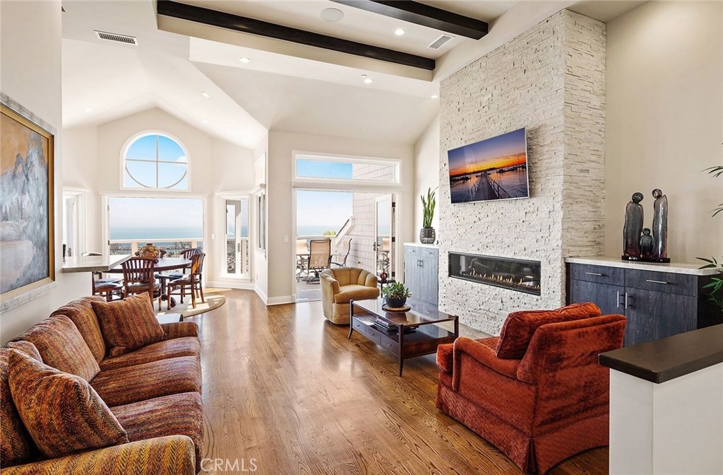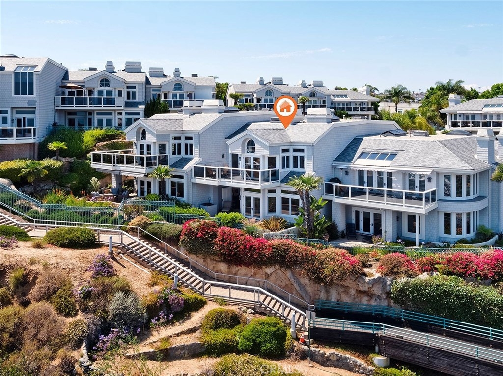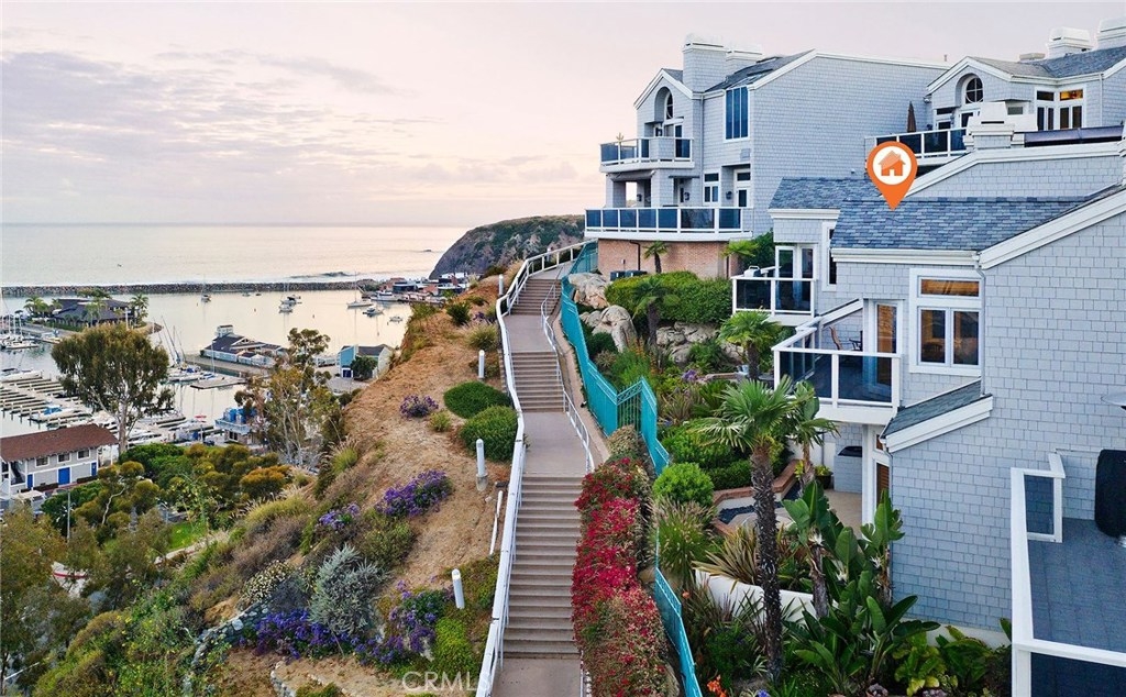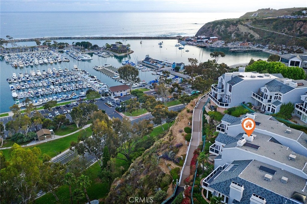 Situated in the prestigious gated community of the Admiralty, this remodeled 2 bed/2.5 bath townhome offers one of the best locations in the city. With breathtaking coastline views, & the incorporation of natural materials (hardwood flooring, wood-beamed vaulted ceilings, stone backsplash, & quartz countertops) you will feel a sense of tranquility from the moment you enter the home. On the main floor, you will find the bright & inviting living room complete with a stone fireplace, window-lined dining room with private patio, & spacious chef’s kitchen with high-end appliances & direct ocean view. The main floor bedroom is generously sized, with on-suite bath & walk-in shower. Downstairs, you will find the private master suite with its breathtaking coastline views. Escape to your own private retreat when you enter the on-suite bath to find a resort-style jacuzzi tub & upgraded shower. The oversized walk-in closet includes custom built-ins & ample storage. The downstairs also includes a cozy sitting room, which can be used as a home office. Just a block away from Dana Point’s Lantern District, you will be walking distance to exquisite dining & shopping. The opportunity to own a bluff-front home in this highly desirable community does not come along often -- don’t let it pass you by!