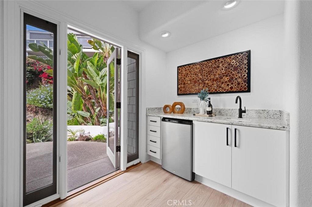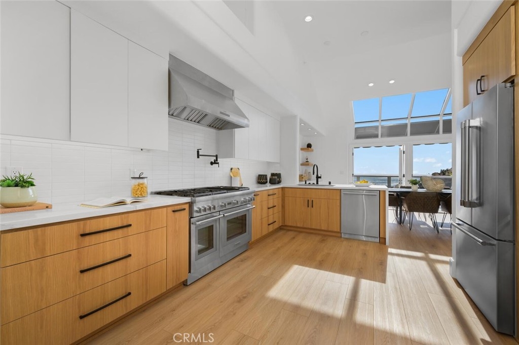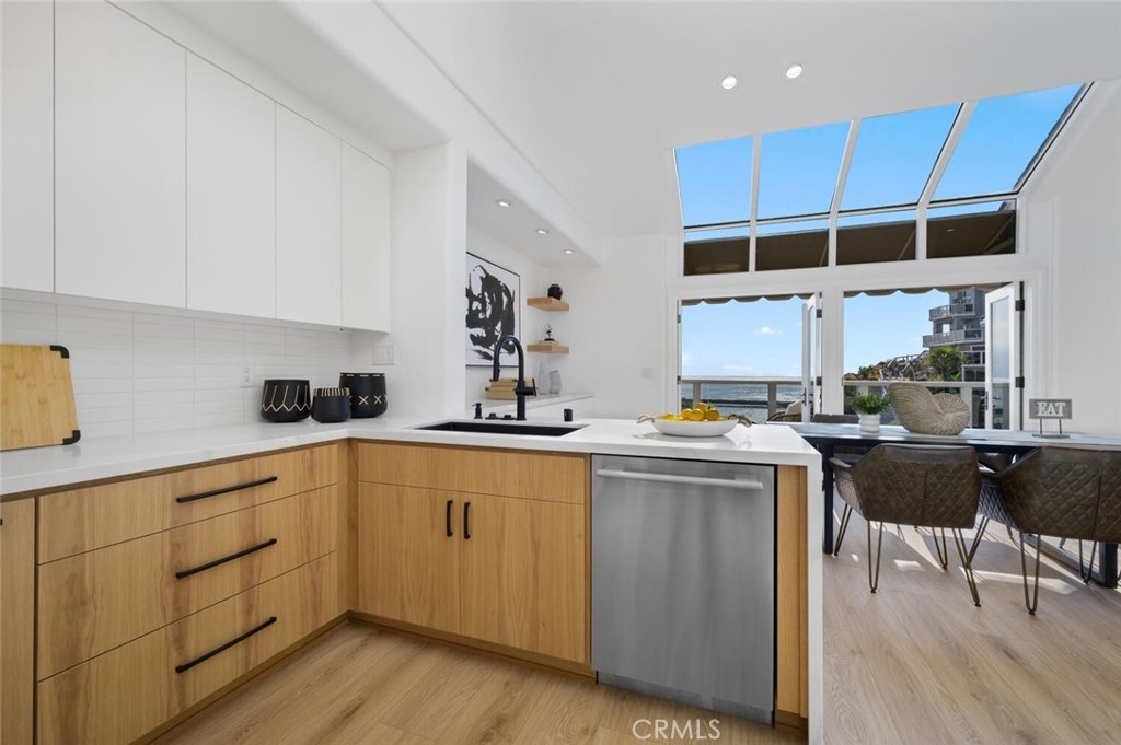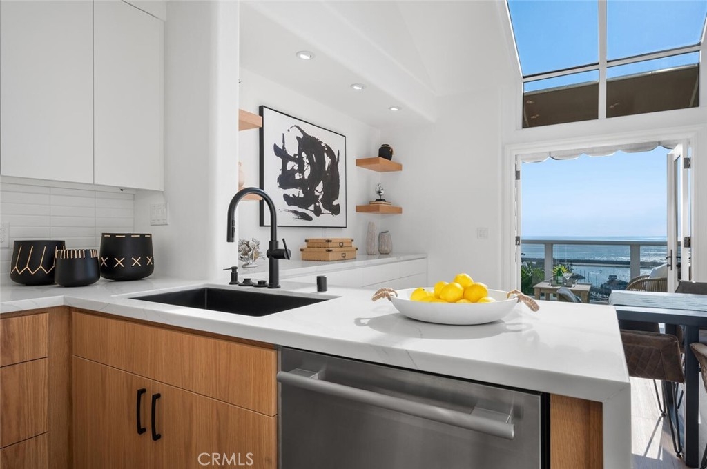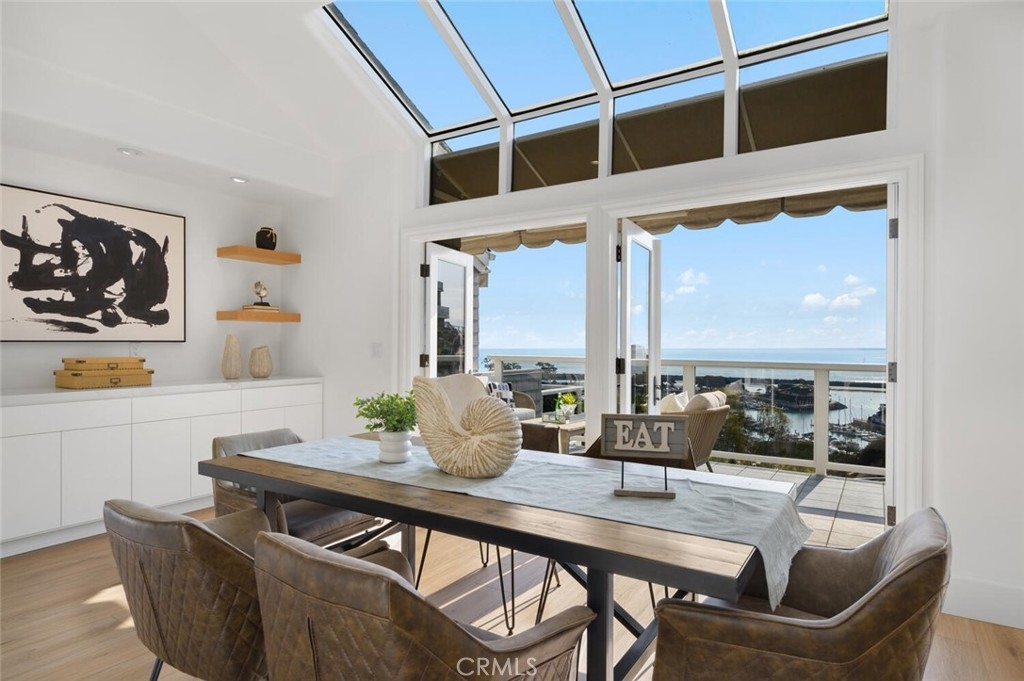 Three rules of real estate: Location, Location,Location! Well it doesn't get any better than this in Dana Point. Our three bedroom, three and a half bath townhome is situated on the front row of the gated Admiralty Community. It is also an end unit that sits directly across from the pool and right above the waterfall in Dana Point. This home has just gone through a complete remodel. The kitchen features brand new Themador Appliances with wifi connectivity. Six burner gas cooktop with built in griddle, and double oven. All the cabinets, quartz counters, sink, fixtures are brand new.There is also dumbwaiter to complete it. There is a main floor bedroom that might trick you into thinking it's the master bedroom, but it's not. The ensuite bathroom boasting brand new soaking tub and large glass enclosed shower, dual sink vanity. As you enter the home the first thing you will see is the most incredible view on newly rennovated Dana Point Harbor and the Pacific Ocean. You can enjoy these view from just about every room in the house. Sit down views from Living room, family room, kitchen, dining area, along with master bedroom/bathroom. There is a total of five decks. Three of which have incredible views of the harbor and ocean. Downstairs is where two more bedrooms and two full bathrooms. The master bedroom has dual sided fireplace and two private decks. The master bathroom opens to a private patio with amazing view. Large glass enclosed shower and beautiful soaking tub in front of fireplace. Water closet features a smart toilet. to top it off there is his and hers walk in closets. All these luxuries may make you never want to leave. However the walkabilty of this home is off the charts. You can park your car for the weekend and never bring it out until Monday morning. Everything you can imagine is in walking/biking distance. Great restaurants, shopping and grocery stores. You have to come see for yourself!