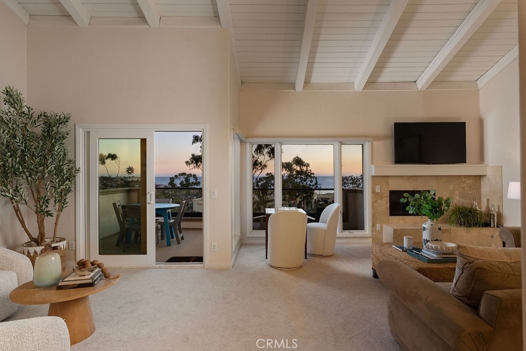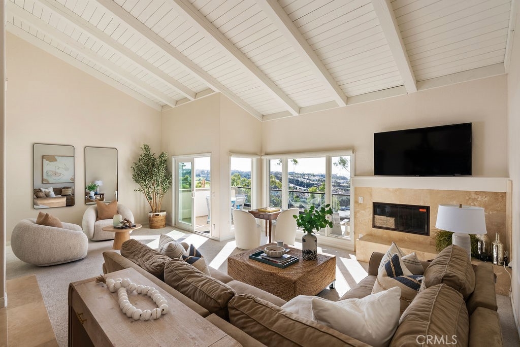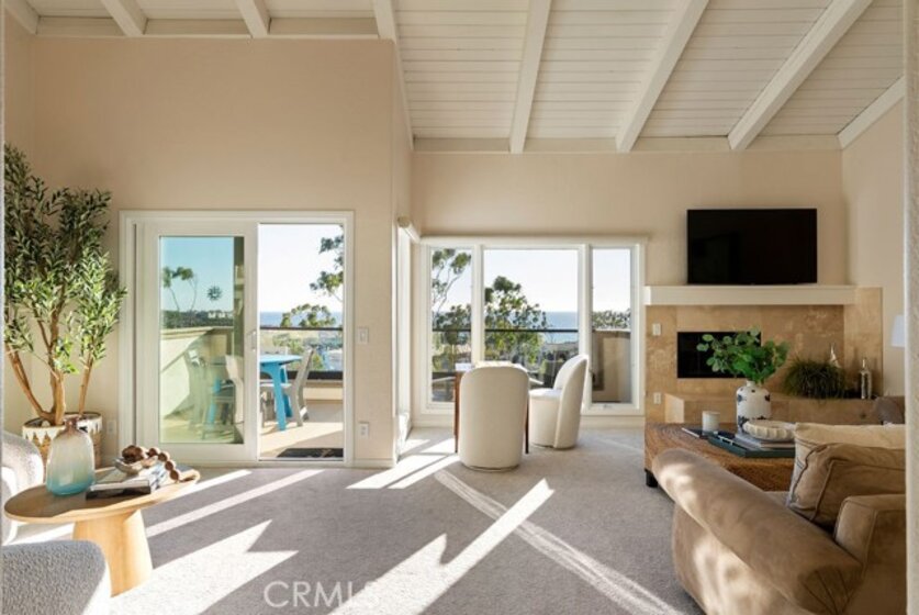 27274 Atlantis Way - Unobstructed ocean, Catalina Island, and city light views define this beautifully refreshed 3-bedroom townhome in the gated community of Monarch Bay Villas. The main living level is designed to maximize the views, featuring an open dining area with sit-down ocean vistas, a light-filled living room with fireplace, and a cozy reading retreat beneath a dramatic vaulted ceiling. An ocean-facing deck extends the living space, offering a front-row seat to coastal sunsets. The kitchen includes stainless steel appliances, updated countertops, and a convenient powder room. All three bedrooms are located on the lower level, providing privacy and separation from the main living areas. The primary suite features a fireplace, ensuite bath, and private deck. Recent updates include fresh interior paint, new carpet, and professional staging to highlight the home’s coastal character. Residents enjoy a tucked away direct access to the scenic salt creek trail leading to the beach, as well as exclusive access to the community pool and spa—ideal for relaxing or entertaining year-round. The home is also conveniently located near Gelson’s Market and the shops and dining at Monarch Beach Plaza. Ideally situated above Monarch Bay, this residence offers an exceptional blend of views, amenities, convenience, and the Dana Point coastal lifestyle.