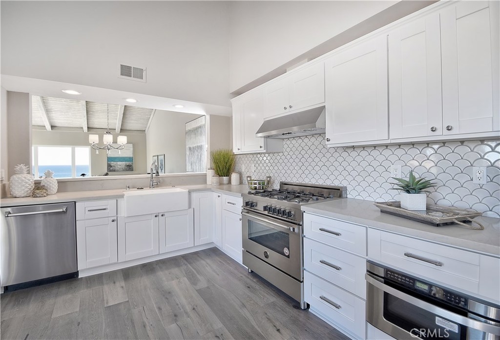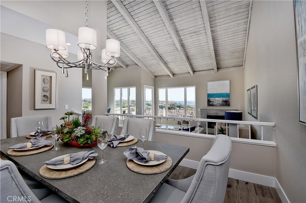 Views, Views! WOW factor w/sit-down Whale Watching OCEAN VIEWS! Stunning coastline, Catalina, city lights, golf course, and big ocean views! Watch the waves crashing on the sand from the living room w/fireplace, vaulted tongue & groove ceiling. This turnkey ocean view condo in Monarch Bay Villas has direct path to beaches and Monarch Beach Golf Course. Enjoy the white water ocean of world famous Salt Creek Beach, Monarch Links, Monarch Beach Hotel, and the Ritz Carlton from any window and most areas of this professionally designed home with many upgrades. This property is located at end of a cul-de sac and is an end unit. Properties in Monarch Villas are rarely offered and this home has been completely remodeled. Recent upgrades include interior fresh neutral color paint, hardwood flooring, new doors, remodeled all bathrooms/ kitchen with Quartz counter tops, and new shaker white cabinets. Kitchen has high end stainless steel appliances including refrigerator and built-in microwave oven. Master bedroom suite has view deck as well. Private gated Monarch Bay Villas community has swimming pool, spa, Gym, Sauna, Clubhouse, Billiard Room and BBQ areas. It is close to fine dining, Monarch Beach , Dana Point Harbor and great shopping.