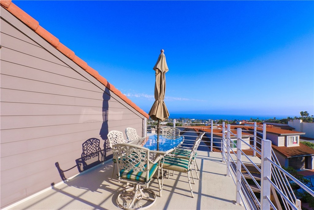 BREATHTAKING PANORAMIC WHITE WATER AND FOREVER COASTLINE VIEW !!! This immaculate Townhouse located high above Dana Point Harbor, enjoy gorgeous night lights view and the yachts and sailboats coming out of the Harbor, watch the 4th of July firework from spectacular spacious Rooftop deck. A 10-15 minutes walk takes You to the Dana Point Harbor filled with Restaurants and Shops, five-star Resorts Golf and miles of World class beaches. Upgrades throughout including Wood flooring, dual pane windows, plantation shutters, remodeled Kitchen & Bathrooms, stainless steel Fisher & Paykel appliances, custom walking closet, tankless water heater, epoxy pipe coating done in 2017, only unit in community with central AC & heating....list goes on & on. Exterior of the House totally redone in a last two years including Roof, Hardie board cement siding, Trex composite decking, balconies. The spacious attached 2 car Garage features custom cabinets and epoxy flooring for easy maintenance. This Home feels like a Single family residence with only one common wall partially attached, this Home is one of only 8 units located in a highly desirable Community. Living the Beach life you have always dreamed of !!!