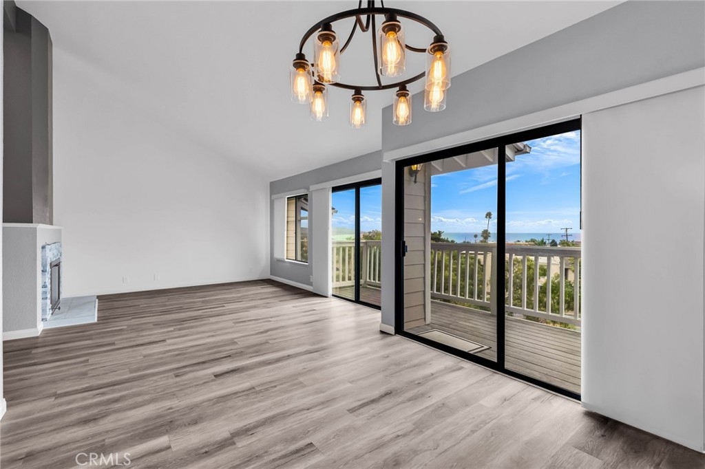Perched in Dana Point’s sought-after, beach-close community of Sea Ridge, this exceptional residence captures sweeping ocean and coastline views. Step inside the main level to discover an airy, open-concept layout enhanced by soaring ceilings and abundant natural light. The living room invites you to unwind with sit-down panoramic ocean vistas, a cozy fireplace, and seamless access to a private balcony—perfect for soaking in golden sunsets. The adjacent dining area flows effortlessly into the bright, spacious kitchen, creating an ideal setting for entertaining. The main level also features a comfortable bedroom and full bathroom. Downstairs, the primary suite awaits, complete with a beautifully updated en-suite bath showcasing dual sinks, a walk-in shower, and a modern soaking tub. The suite opens directly to a private patio, where you can relax with the refreshing ocean breeze and tranquil views. This level also includes a dedicated laundry room. Ideally positioned near the end of a cul-de-sac with no neighbors behind, the home offers enhanced privacy and uninterrupted vistas. Sea Ridge residents enjoy resort-style amenities, including tennis courts, a clubhouse, a sparkling pool and spa, and lushly landscaped greenbelts—all just minutes from Dana Point Harbor, downtown shops and dining, and world-class beaches and resorts.