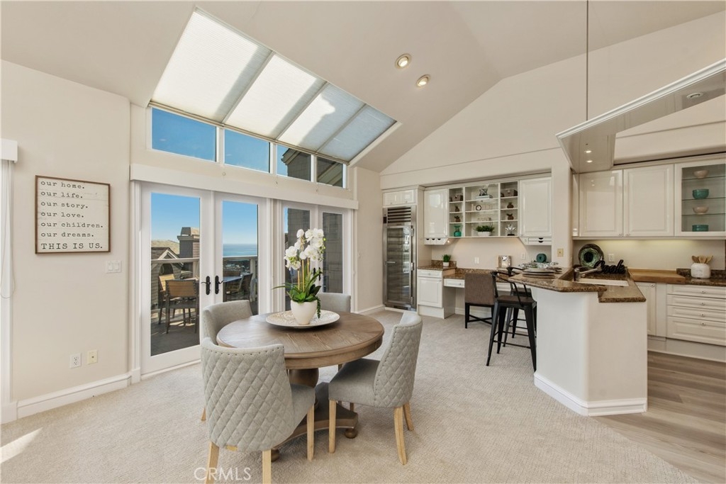 With an incredible location in the downtown Lantern District, this home in the prestigious Dana Point community of Admiralty is truly one of a kind! Located on the ocean side of Pacific Coast Highway with Dana Point Harbor and ocean views from multiple areas of this home, this luxurious, gorgeous home will impress even the most discriminating buyer. This spotless property boasts 3 bedrooms, 4 baths, a spacious den, cathedral vaulted ceilings, and a kitchen any gourmet chef would love! The dining area and living room feature double french doors leading to a large expansive deck with spectacular harbor and ocean views! Spacious secondary bedrooms feature en suite bathrooms with dual sinks! Spacious primary master suite is located downstairs with two private patios, 2 walk in closets, oversized soaking tub, walk in shower, and double sinks and views! Enjoy the 2 car garage that also features a dumbwaiter that may CONVERT TO AN ELEVATOR, accessing the entire home. This swanky and lush community features a pool, and the entire community is gated for ultimate privacy! Truly open, light and bright and a most extraordinary location with a walking trail to Heritage Park for beach access, and walking distance to the Lantern District of Dana Point!