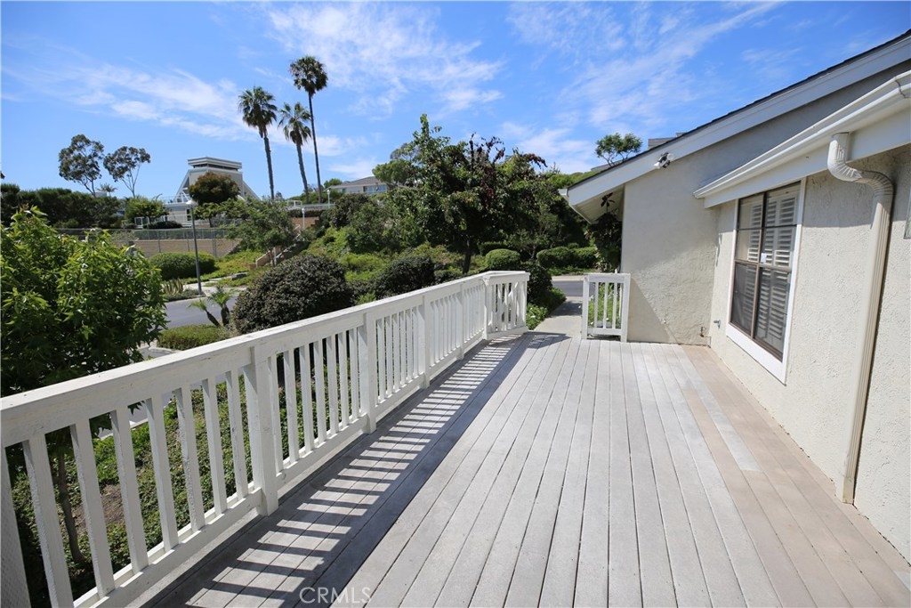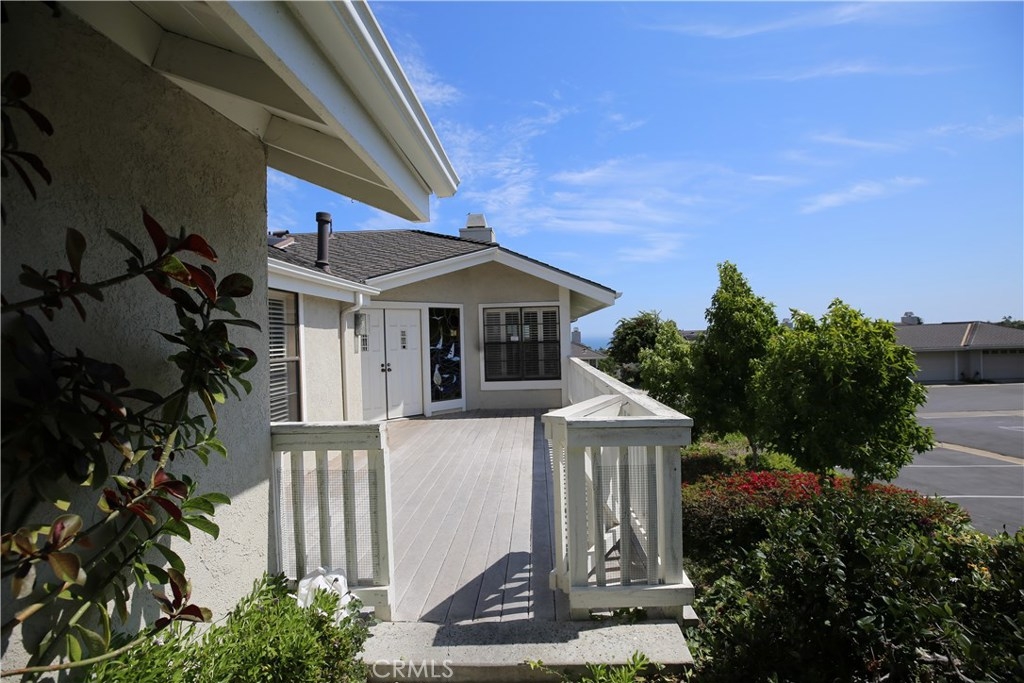 Come live the true Beach Lifestyle in the wonderful Sea Ridge community. This great end unit condo has one of the best locations! Directly across from the tennis courts & tons of additional parking. The stairs to the clubhouse, swimming pool and spa are also just across the street with spectacular ocean views! This unit has a large deck in the front for outdoor entertaining and a large patio off the master bedroom. It also has a main level bedroom. The kitchen is open to the family room and those beautiful ocean views. Lots of plantation shutters throughout. A very quiet location as well. You will definitely want to have all of your parties in the beautiful spacious clubhouse just a short short walk away. Did I mention plenty of parking? Do you have teenagers? Save tons of money on car insurance- they can walk to school! Dana Hills High is just up the way! You are minutes away from downtown Dana Point, Dana Point Harbor, wonderful restaurants, and world renown resorts- The Ritz Carlton and Monarch Beach Resort. You will definitely fall in love with this community and its location.