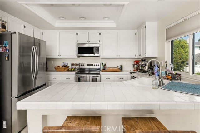 Perched above Dana Point Harbor in the desirable Sea Ridge community, this thoughtfully designed residence captures sweeping panoramic ocean and harbor views. Spanning approximately 1,859 square feet, the end unit townhome features 3 bedrooms and 2.5 bathrooms with a floor plan that maximizes the views from the upper level. Step through the entry on the second floor into an open-concept main living area where the kitchen, dining, and family room flow seamlessly together—perfect for coastal entertaining. The primary suite is conveniently located on this level, offering privacy and functionality. Downstairs, two additional bedrooms open to the private backyard and patio area, ideal for guests, an office, or a quiet retreat. A dedicated laundry room and full bathroom complete this level. Outdoor living is highlighted by Trex decking, a spacious patio, and multiple vantage points to enjoy the sunset over the Pacific. A two-car attached garage is perfect for 2 cars and extra storage. The community offers resort-style amenities including a pool, spa, clubhouse, 2 acre private green belt, and tennis courts, all of which have stunning ocean views. Ideally located just minutes from Dana Point Harbor, Strands Beach, and downtown Dana Point, this home offers the best of coastal living—views, comfort, and lifestyle—all in one perfect package.