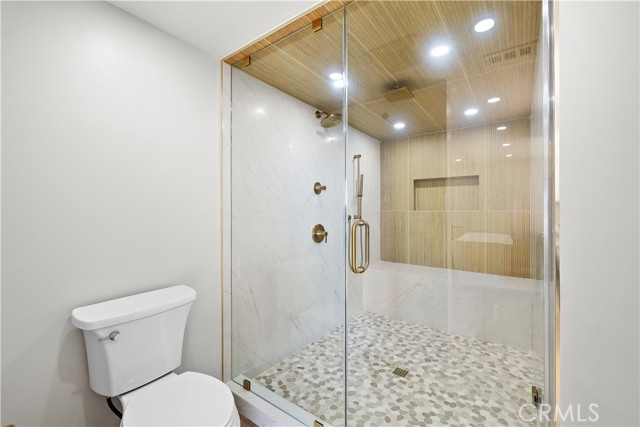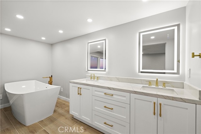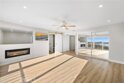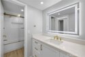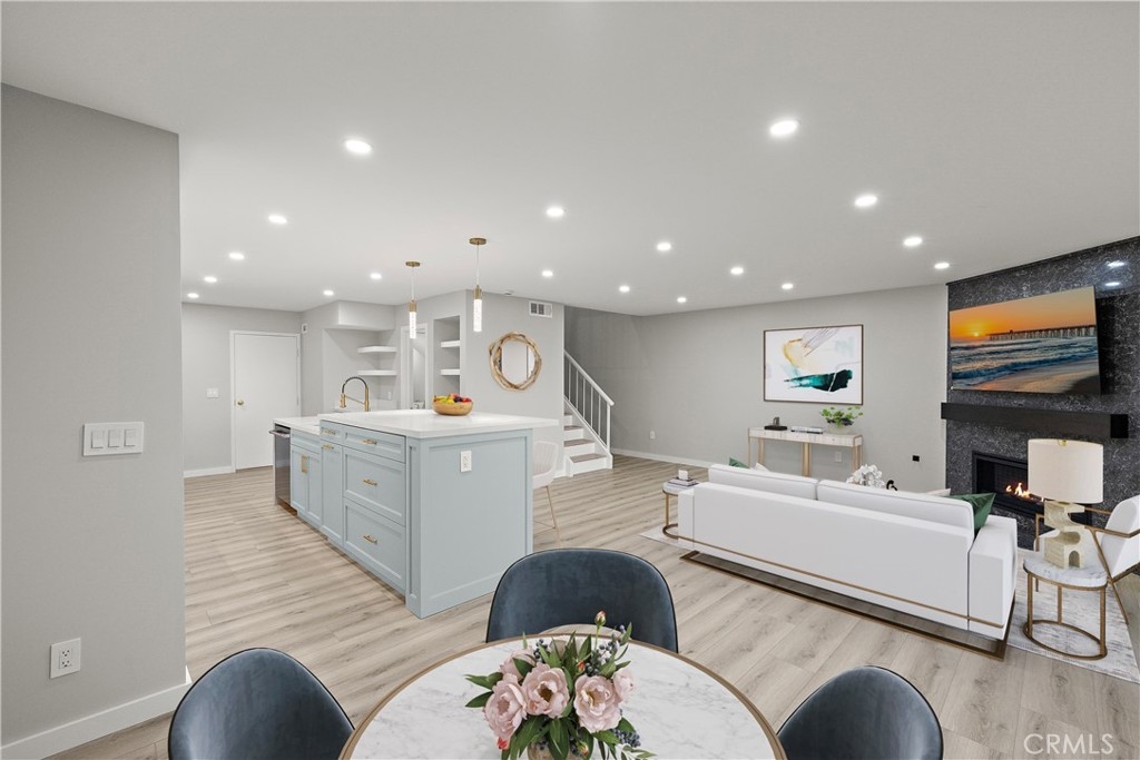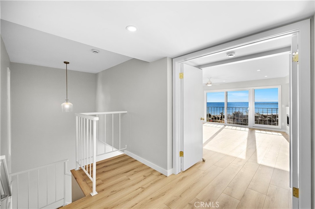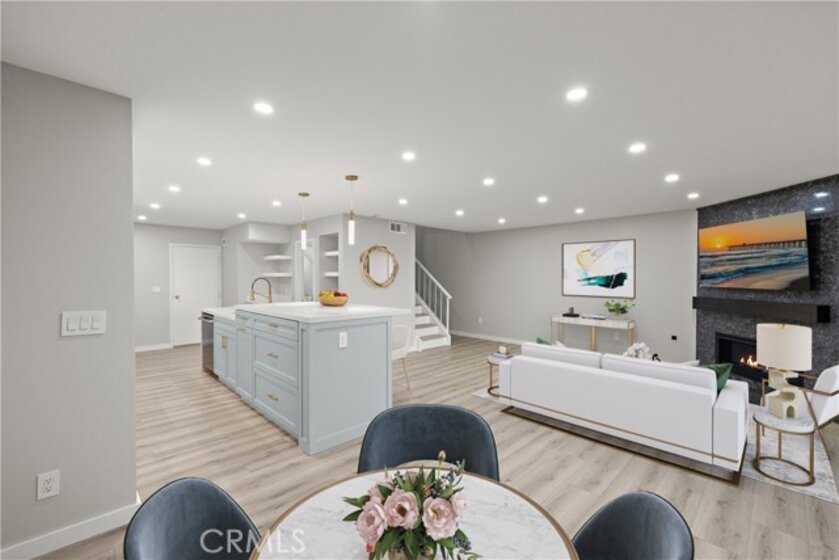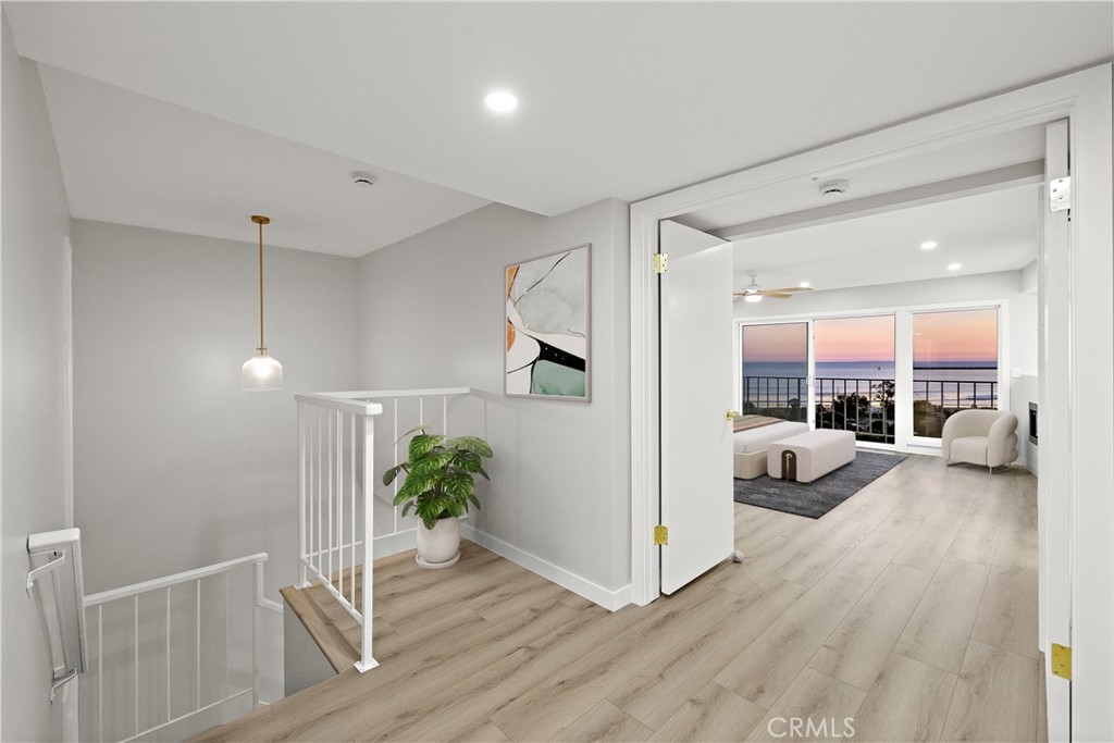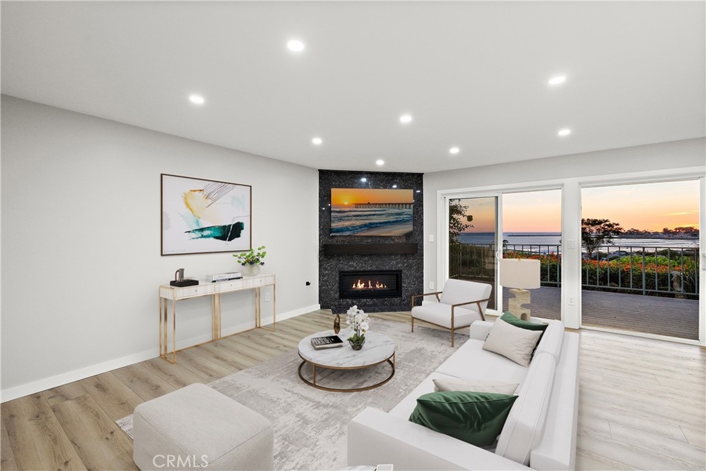 Experience coastal living at its finest in this completely remodeled bluff-front home in the highly sought-after Dana Bluffs community. This rare turnkey property showcases sophisticated design, high-end finishes, and unobstructed views of the ocean and Catalina Island from both levels. The open-concept main floor has been reimagined to capture light and space, featuring a fully remodeled kitchen with structural beam support, custom cabinetry, quartzite counters, under-cabinet lighting, new appliances, and updated electrical and plumbing throughout. The living area centers around a sleek new linear fireplace with a stone surround, while the adjacent dining space flows effortlessly to a private ocean-view patio—perfect for morning coffee or sunset gatherings. The main level also includes a beautifully redesigned powder room and a custom-built garage bar area with a wine fridge and smart garage system. Upstairs, the elevated primary suite is a private retreat offering panoramic views, a freestanding soaking tub, a double-sided see-through electric fireplace, a quartzite-topped vanity with LED mirrors, and a spacious Italian-tiled steam shower by Mr. Steam. Two additional bedrooms feature new closets, recessed lighting, and custom finishes, while the hallway bath has been completely updated with quartz counters, new cabinetry, and modern fixtures. Every inch of this home has been upgraded with careful attention to detail, including all-new plumbing, water, and sewer lines; extensive new electrical wiring and a new panel; new recessed lighting, outlets, and switches; and new vinyl flooring throughout. The staircase has been reinforced and opened to incorporate additional storage, and every closet and cabinet in the home is fully custom. This home seamlessly blends modern luxury with coastal charm, offering a truly exceptional living experience in one of Dana Point’s most desirable oceanfront communities. Dont miss you opportunity to secure one of the nicest units in this SOON-TO-BE renovated community. The community wide renovation has commenced and is going to bring amazing values to Dana Bluffs!