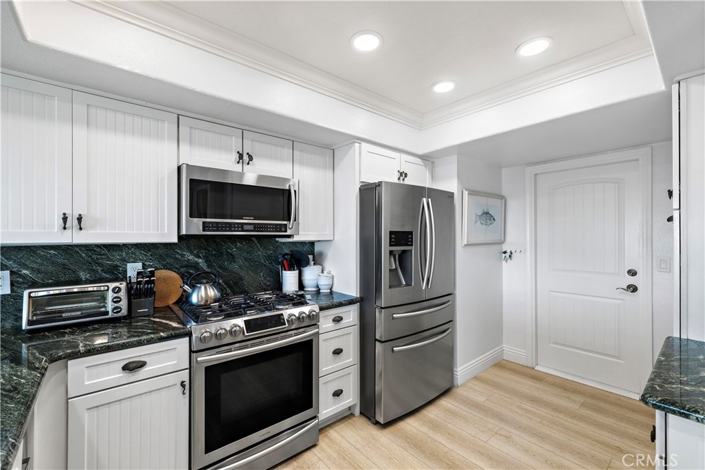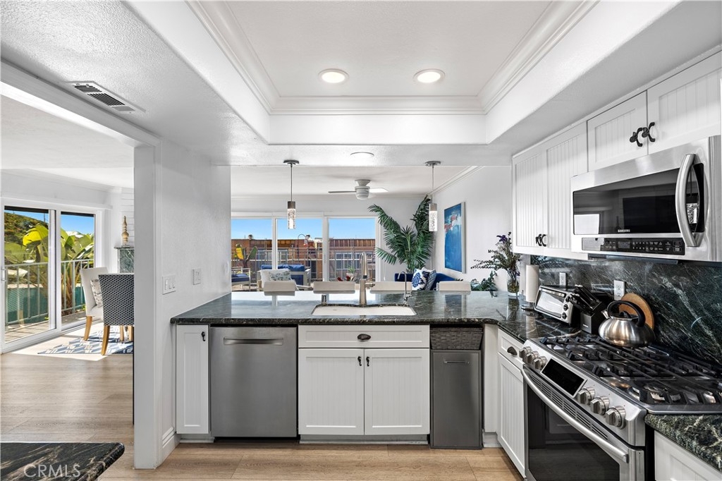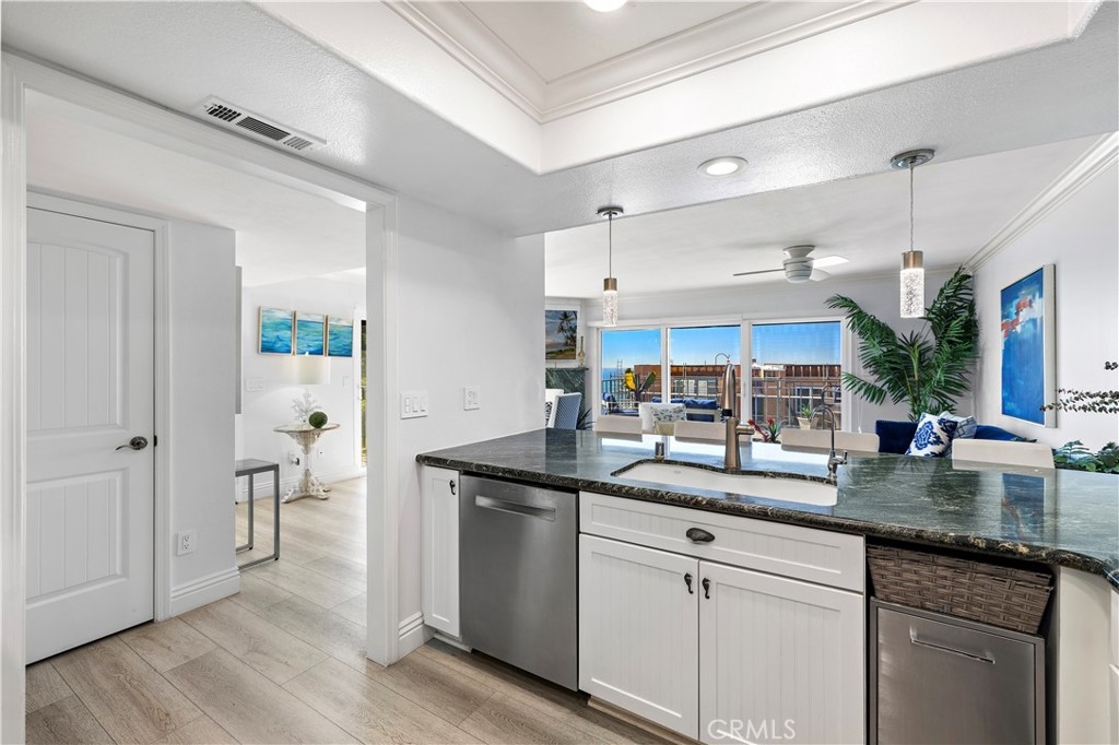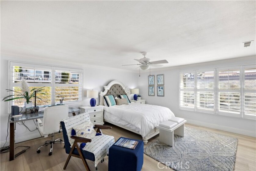 Discover your dream coastal retreat in this exceptional corner unit of the highly sought-after Dana Bluffs Community. Immerse yourself in breathtaking views of the ocean, Dana Point Harbor, Doheny Beach, and Catalina Island. This luxurious home invites you to a world of tranquility and elegance. Step into an elegantly designed open floor plan that seamlessly connects the living room, dining area, and kitchen. The living room exudes comfort and style with its custom granite fireplace, setting a sophisticated tone. The adjacent dining area provides a welcoming space for cherished meals, while the kitchen is a chef’s dream, equipped with stainless steel appliances, Kraftmaid cabinets, and custom granite countertops that harmonize beautifully with the fireplace. The home’s new luxury vinyl flooring adds a touch of durability and elegance throughout. Unique touches like the custom etched glass window with wave designs on the landing infuse the space with a coastal charm. Upstairs, two spacious master suites await, each with ample storage in its large mirrored closets. The primary master suite is a true haven, opening onto a deck with panoramic views and an electric awning, where you can relax and unwind to the soothing sounds of the waves. Practicality is ensured with the two-car garage, featuring ample storage cabinets, a new water heater, a washer and dryer, and a freshly epoxy-coated floor. The Dana Bluffs Community offers exclusive amenities, including a heated pool, spa, tennis and pickleball courts, and a clubhouse with breathtaking coastal views. Just minutes from local beaches, the harbor, restaurants, and shopping, this home embodies the coveted beach lifestyle. Experience resort living every day in this breathtaking Dana Bluffs residence. EXCITING NEWS!! DANA BLUFFS HAS COMMENCED ITS COMMUNITY WIDE RENOVATION. THIS IS NOT ONLY GOING TO ENHANCE THE LOOK OF THE COMMUNITY BUT IT WILL BRING SOARING VALUES. THERE IS A REASON WHY ALL OF THE INVENTORY IN DANA BLUFFS HAS BEEN PURCHASED. COME GRAB THE LAST CURRENT OPPORTUNITY BEFORE ITS TOO LATE.