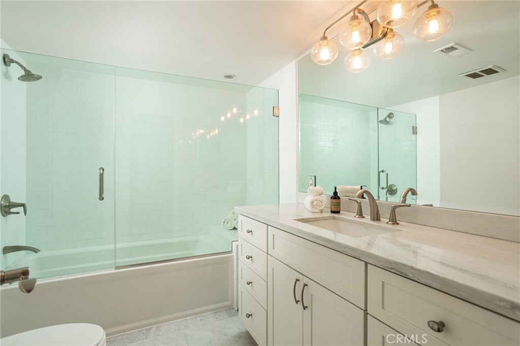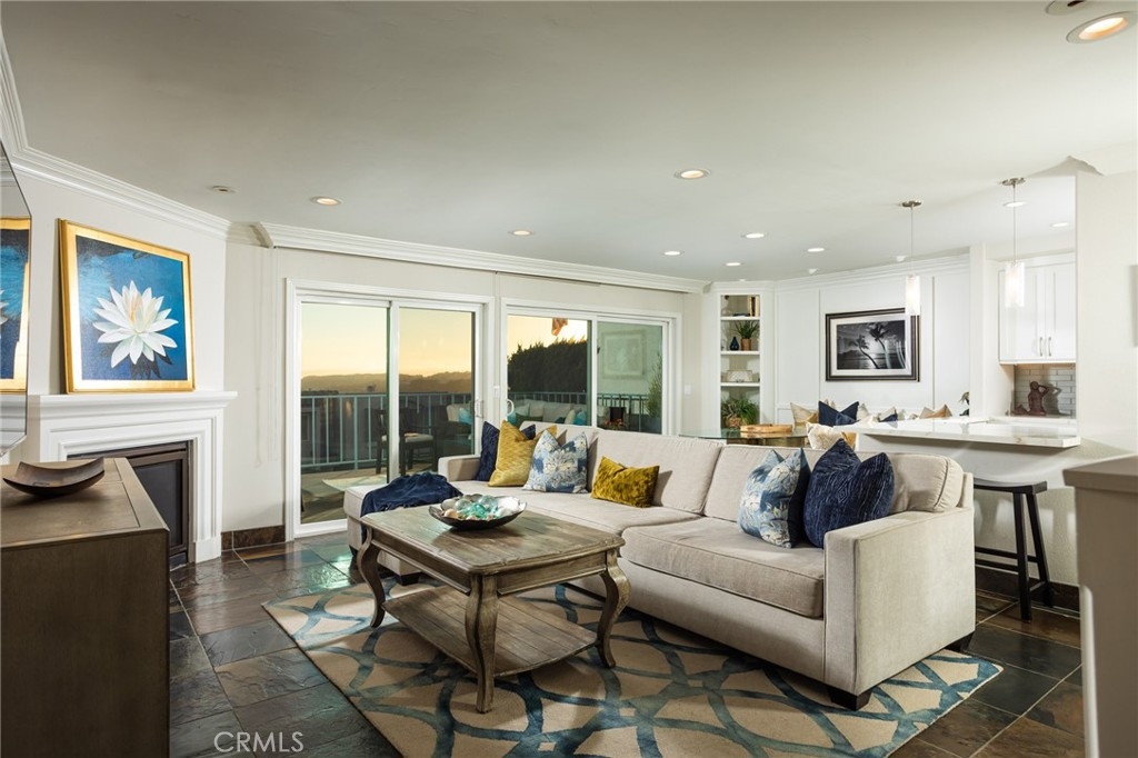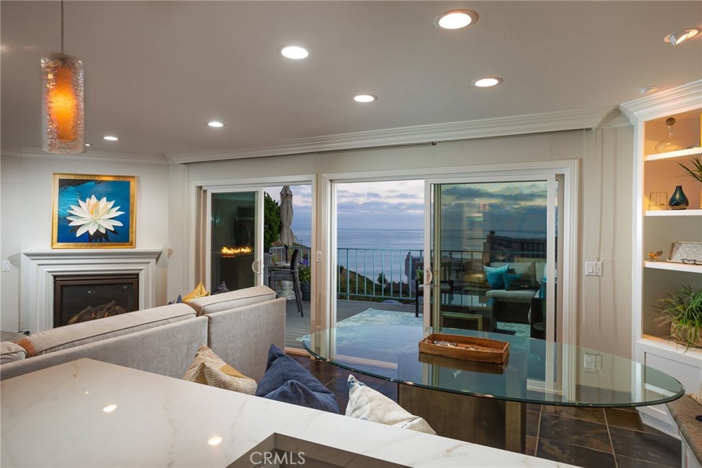 The ultimate coastal retreat! Enjoy captivating ocean views that stretch to Catalina from this light and bright three-bedroom, two-and-one-half-bathroom condominium. Open plan interiors span approximately 1,830 square feet with meticulous upgrades and bespoke finishes throughout. Enter to a sun-flooded great room warmed by a fireplace with sliding glass doors that lead out to the spacious entertainer's deck with a backdrop of the ocean beyond. Positioned to optimize functionality and space, the chef's kitchen is fitted with shaker cabinets, subway tile backsplash, designer pendant lights, and is equipped with top-of-the-line KitchenAid appliances. Further along, the breakfast nook with built-in seating is perfectly situated to take in the awe-inspiring views. All three bedrooms are upstairs including the primary suite that hosts a private deck perfect for taking in colorful sunsets, a walk-in closet, step-in shower, and dual vanity sinks. Beyond, two secondary bedrooms and a full bath complete the second level. Additional amenities include an attached two-car garage with washer and dryer hookup. Residents of Dana Bluffs enjoy a private community pool, spa, clubhouse, and park overlooking the dramatic coastline of Dana Point. Situated near picturesque beaches, Dana Point Harbor, Lantern Village, Monarch Beach Resort, highly rated schools, shopping, dining, and entertainment, this exceptional offering is beyond compare!