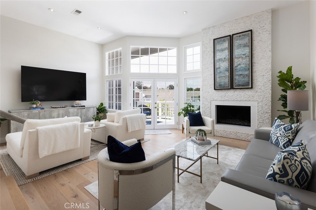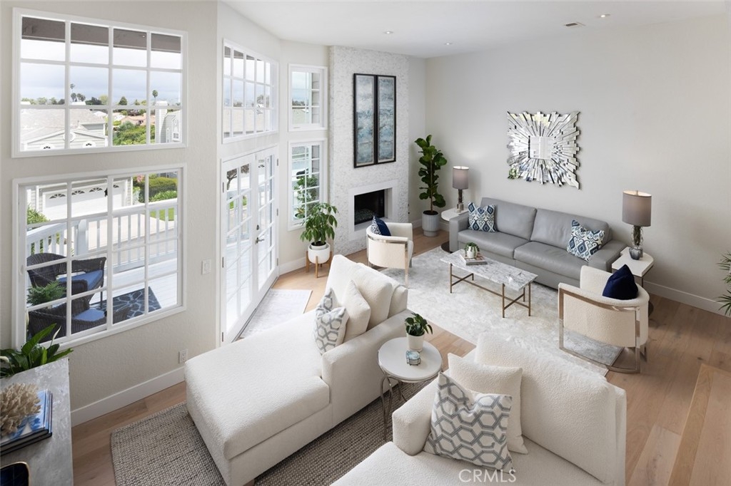 Welcome to 33156 Ocean Bright – Where Everyday Living Feels Like a Getaway Step into resort-style elegance in this beautifully remodeled 3-bedroom, 2.5-bath home tucked within the tranquil and highly sought-after Maranitas neighborhood of Dana Point. From the moment you pass through the double-door entry, you're greeted by soaring ceilings, sun-drenched spaces, and a sense of sophistication that immediately feels like home—and like vacation. To your left, a sleek, fully upgraded kitchen awaits, featuring contemporary stone counter-tops, matching stainless steel Kitchen Aid appliances, and a 5-burner gas cook-top. The adjacent dining area, illuminated by a shimmering chandelier, flows seamlessly into the heart of the home: a grand living room with 20-foot vaulted ceilings, a floor-to-ceiling tiled fireplace, and expansive glass doors that open to a private balcony—perfect for morning coffee or evening sunsets. An elegant bar with a wine refrigerator creates a stylish space for entertaining, while a discreet powder room near the entry adds convenience for guests. Just beyond the kitchen, a fresh and functional laundry room provides direct access to the over-sized 2-car garage, both offering ample storage. Up the sunlit, sconce-lined staircase, the upper level features a spacious landing with built-in storage, two secondary bedrooms, and a remodeled hall bath. Through double doors, the luxurious primary suite becomes your personal retreat—complete with rolling hill views, a cozy fireplace, dual closets (including a walk-in), and a spa-like en-suite bath. The newly remodeled primary bathroom showcases a massive dual-head walk-in shower with a built-in bench and niches, a double vanity with dedicated makeup station, and private water closet—all finished with elegant, large-format stone. With engineered hardwood flooring throughout the main level and staircase, fresh designer paint, new lighting and fixtures, and thoughtful modern upgrades throughout, this home is a true coastal sanctuary. Located minutes from world-class beaches, dining, resorts, shopping, and the Dana Point Harbor—undergoing a $500 million revitalization—this is more than a home; it’s a lifestyle. From hiking and surfing to dolphin and whale watching, endless adventure and serenity are right outside your door. Don’t miss your chance to live where every day feels like a vacation in one of Orange County’s most vibrant coastal communities.