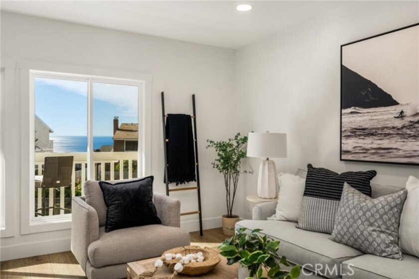 Wake up to breathtaking panoramic views of the Pacific Ocean and Catalina Island from this beautifully remodeled coastal retreat located within a private gated community. This stunning 3-bedroom, 2-bathroom residence blends modern design with relaxed seaside elegance and is a truly turn-key, diamond-quality property.The light-filled interior features wide-plank luxury vinyl flooring, refined shiplap detailing, and thoughtfully designed custom built-ins throughout. The open living and dining areas are anchored by a striking double-sided fireplace, creating a warm and inviting space perfect for both everyday living and entertaining. The kitchen showcases quartz countertops throughout, crisp white cabinetry, stainless steel appliances, and a seamless connection to the main living space—ideal for hosting and daily living. A beautifully designed laundry room adds both style and functionality. The primary bathroom features elegant marble finishes, enhancing the home’s spa-like feel. Enjoy indoor-outdoor living with expansive windows and direct access to a private balcony, where sunset, ocean, and Catalina Island views create a breathtaking backdrop for morning coffee or evening relaxation. One of the upstairs bedrooms offers harbor views, adding another unique perspective to this exceptional home. Additional upgrades include newly installed HVAC system, newly installed Milgard windows, and repiping with PEX plumbing, providing modern efficiency and peace of mind. The property offers a one-car garage with epoxy flooring, plus an additional carport for convenient parking. Ideally located in the heart of Dana Point, just steps from Strands and Salt Creek Beach and moments from beautiful Lantern District, dining, shopping, and the harbor—this turn-key home offers the very best of Dana Point coastal living.