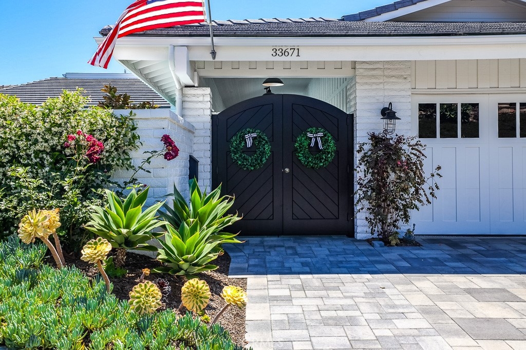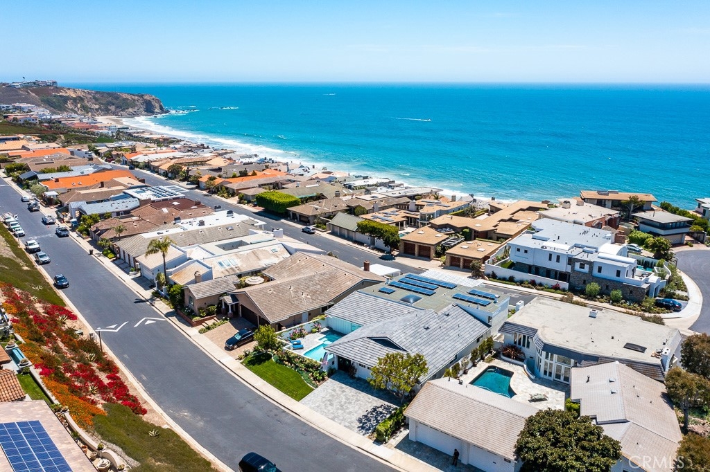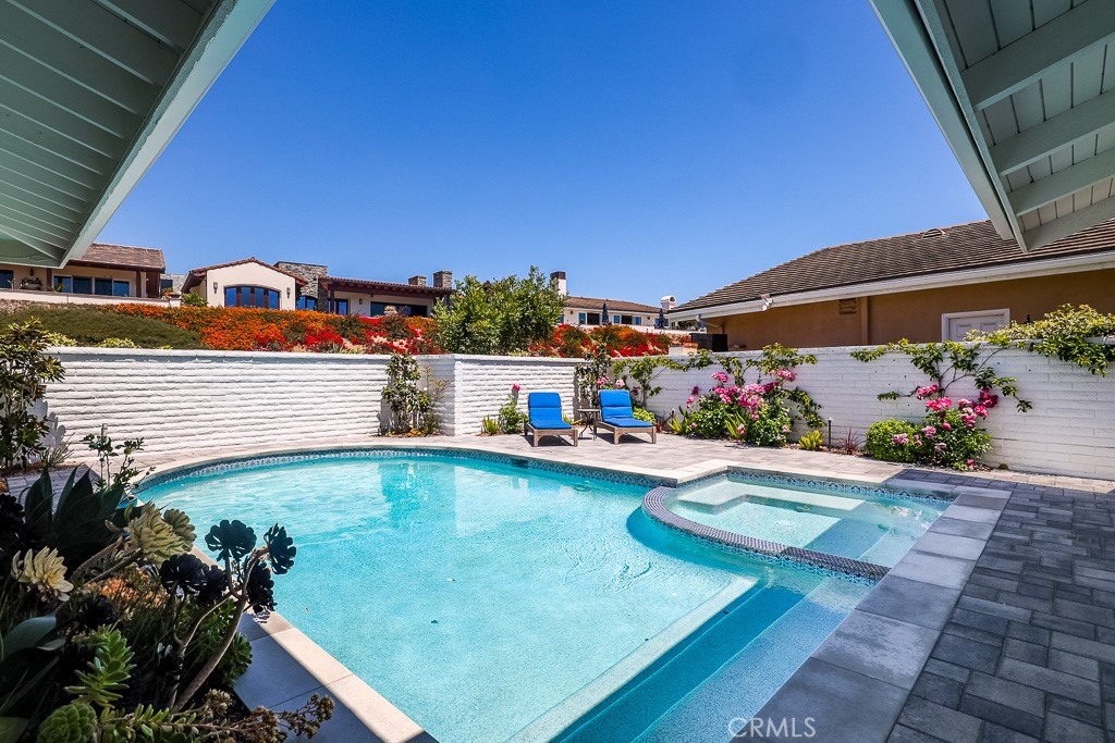 Nestled on a pristine, single loaded street with sweeping ocean views, sits a stunning residence in the gated enclave of Niguel Shores. Surrounded by coastal beauty, this gorgeous 4-bedroom, 2.5 bath residence is the perfect landscape for exquisite indoor-outdoor living. Welcome to 33671 Shackleton! Artfully designed, this is the home you have been dreaming of. Elegant exterior welcomes you into a spectacular, rarely found, courtyard with sparkling pool and patio, just one of many delightful surprises. Pure coastal luxury welcomes you to the stunning entry showcasing a glimpse of the modern architectural details, stunning fixtures, and designer touches throughout. Pristine white oak flooring anchors the natural light-infused, open concept layout of the home. Sparkling glass sliders bring the incredible view into the generous living space with fireplace, beamed ceilings and access to the expansive outdoor deck perfect for dining alfresco and impressive sunsets. Step down from the deck to the lower yard offering more open space with beautiful views. Entertain in the chef’s kitchen boasting a wrap-around island with seating, custom slate colored cabinetry, white quartz counters, high-end stainless appliances and wine refrigerator. Plan formal dinners in the lovely dining room. Relax in the 2nd living area, currently an office, with ocean views and Moroccan tiled fireplace with reclaimed wood mantle. A hidden surprise is the attic space for endless creative ideas. A charming powder bath completes this fabulous second level. Experience ultimate peace with all bedrooms on the entry level floor. Pure luxury awaits in the main bedroom suite with soaring rake ceilings and French doors leading to the pool area. Magnificent ensuite bath with fine finishes and fixtures, modern vanity, shiplap accents, freestanding tub and custom tiled glass shower. Three more fabulous guest rooms await with ultimate flexibility to be reimagined as a work from home office or more. Chic guest bath delights with free standing chevron tiled shower and Moroccan tile flooring. Niguel Shores offers residents a resort-like setting with an ocean-view bluff, a park, 50 acres of scenic open space, and a clubhouse with sauna, junior Olympic-size pool, tennis courts and pickleball. Minutes to Dana Point Marina and private access to Salt Creek Beach. Don’t miss this one-of-a-kind opportunity to live the ultimate coastal lifestyle.