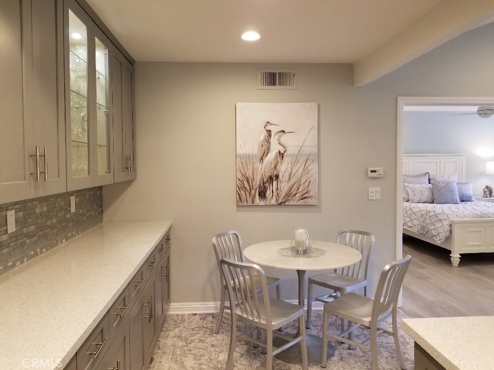 SELLER MOTIVATED! "Model Perfect" unit, with ALL furnishings included! Located in desirable Harbor Creek community with walking/biking distance to the sand (Doheny). Seller spent so much $$$ upgrading this gorgeous unit, never intending to sell it. So, guess who benefits? YOU! The flooring alone was 10K to achieve special sound-proofing. Brand new kitchen was extended apx. 8 feet into the dining area with extra upper/lower cabinetry with pull-out drawers & soft-close doors. Kitchen features new high-end Cambria Quartz countertops, new sink, custom tile backsplash & new marble top kitchen table w/chairs. Custom paint thru-out, along w/Crate and Barrel comfy chair & queen sofa sleeper w/upgraded mattress, gives the place the "model" look. Brand new bedroom furniture w/thousands spent on a sleep number bed. Bathroom, has new cabinetry, backsplash, counters, mirror, paint and flooring. When I said everything is included, I meant EVERYTHING!. There is not enough space to tell it all, but there are Oodles of brand new small appliances, toaster, mixer, coffee maker, etc. New lighting & ceiling fans. New LG washer/dryer and TV have 5 year extended warranties. Brand new pots/pans, dishes, glassware, flatware, linens, printer, shredder, tools & office supplies. Entire complex has been re-piped. Nothing for you to do, but enjoy.