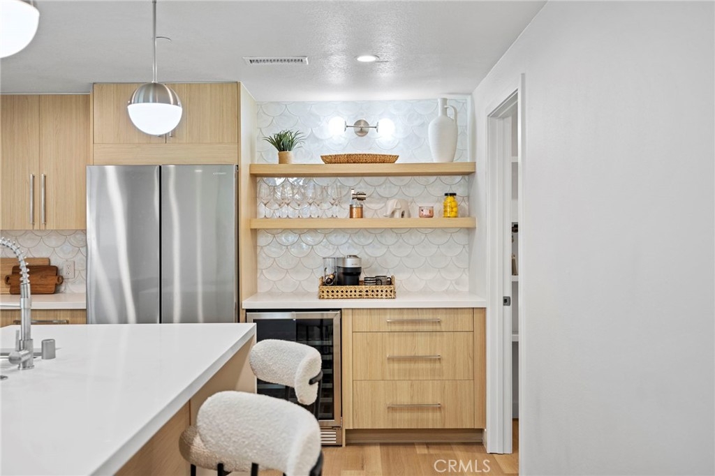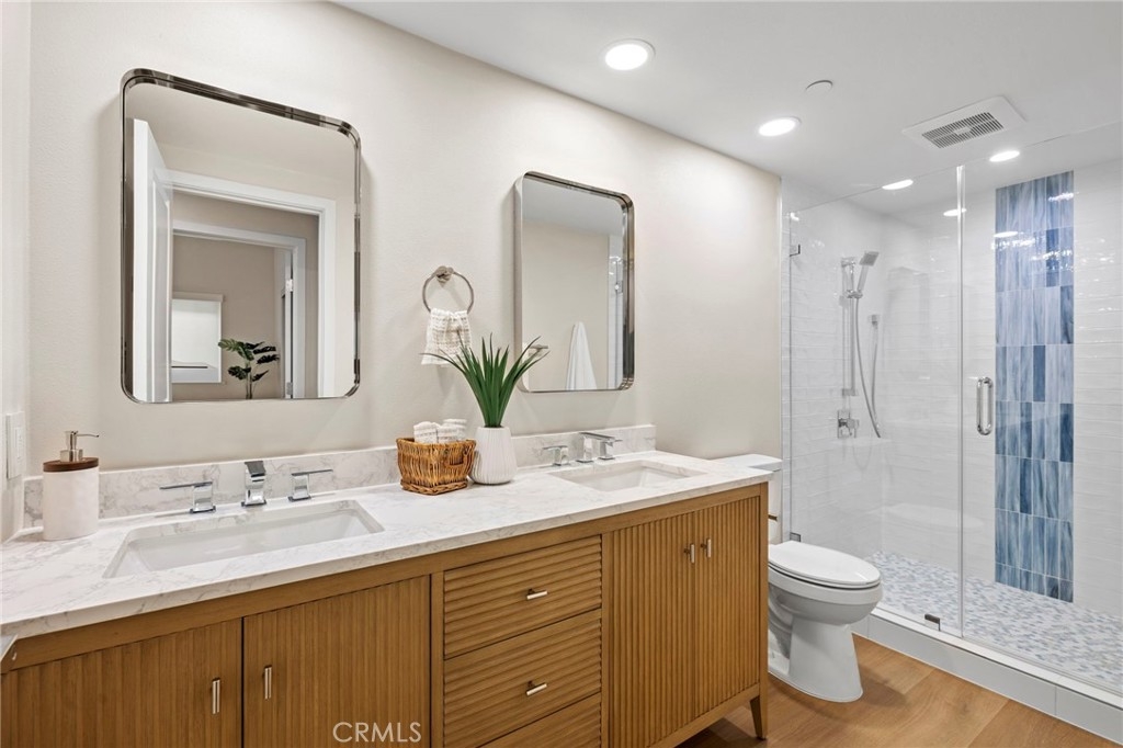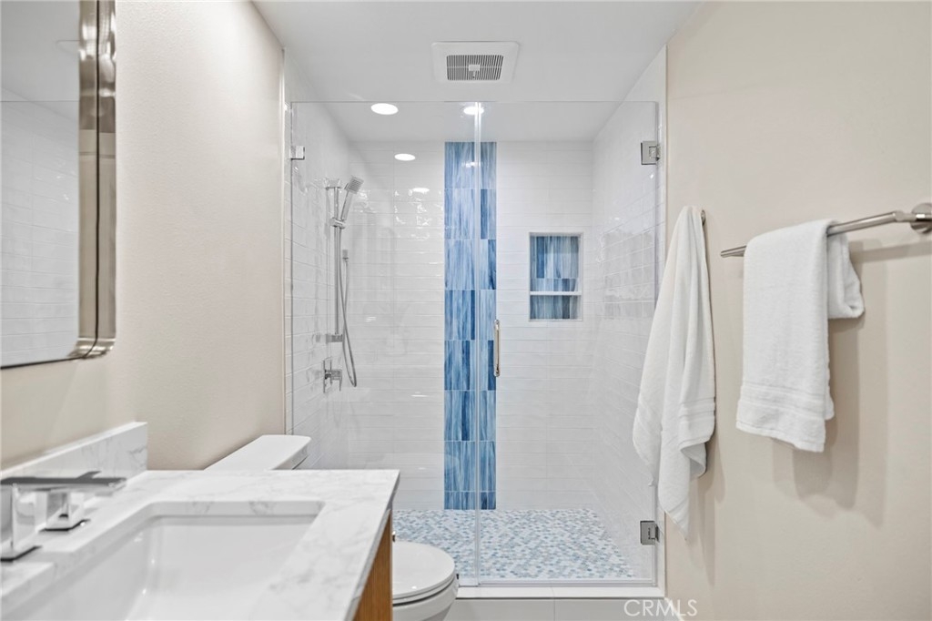 Experience elevated coastal living in this completely remodeled, luxury three-bedroom, 2½-bath townhome featuring breathtaking ocean views from all three private balconies. This stunning residence has been thoughtfully upgraded with high-end finishes, designer details, and modern conveniences to create a sophisticated yet comfortable retreat. Step inside through the custom-designed front door and immediately appreciate the bright, open layout enhanced by all-new windows, doors, flooring, and LED lighting throughout. The main living area showcases a redesigned family room centered around a striking new fireplace, creating the perfect ambiance for relaxing evenings while enjoying the ocean breeze. Just off the living room is a balcony offering sweeping ocean views—ideal for morning coffee or sunset gatherings. The gourmet kitchen is a true showpiece, designed for both everyday living and entertaining. Featuring custom cabinets, sleek Quartz countertops, a spacious center island with breakfast bar seating, and premium stainless-steel appliances including a brand-new refrigerator, stove/oven, microwave, dishwasher, under-counter wine refrigerator and a walk-in pantry. Adjacent to the kitchen is the formal dining room that provides an elegant setting for hosting dinner parties or intimate meals with family and friends. The primary suite features a custom fireplace, walk-in closet & direct access to a private ocean-view balcony. The spa-inspired primary bathroom is complete w/ marble countertops, soaking tub, walk-in shower w/ marble accent tiles and dual vanity sinks. Every detail has been carefully curated to provide both beauty & comfort. One of the two secondary bedrooms has its own private balcony w/ocean views. The remodeled secondary bathroom includes dual vanity sinks and a spacious walk-in shower w/upgraded designer glass tiles. A convenient walk-in laundry room is also located on this level and includes a brand-new washer & dryer. The guest powder room features a marble tile accent wall, stunning custom vanity completed by hanging light fixtures and a touch light mirror that leaves a lasting impression. Additional highlights include a new custom staircase, pex plumbing throughout and a two-car garage. From top to bottom, this townhome reflects superior craftsmanship and luxury upgrades at every turn. This exceptional property delivers the ultimate in coastal elegance and modern living. This is a rare opportunity to own a turnkey ocean-view townhome.