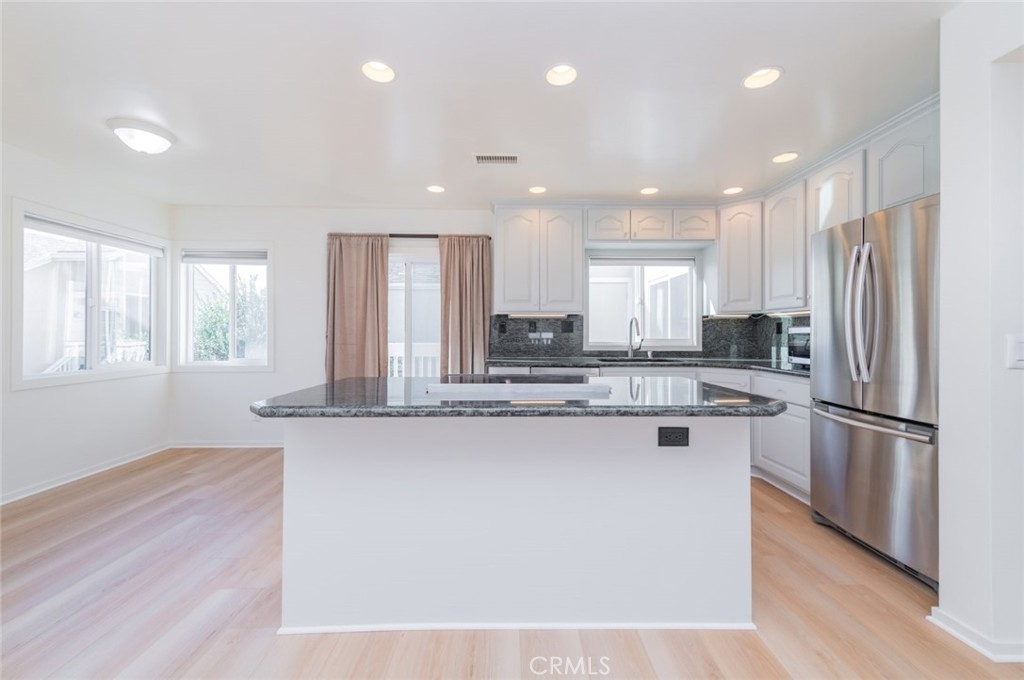 Welcome to this upgraded 2-bedroom, 2-bath condo of comfortable coastal living in the desirable Niguel Beach Terrace community of Dana Point. This upper-level end unit features vaulted ceilings, no unit above, and a quiet interior location within the community. The open floor plan allows natural light to flow throughout the living and dining areas, creating a bright and inviting space ideal for everyday living. The kitchen has been thoughtfully upgraded with granite countertops, a center island, stainless-steel appliances, expanded cabinetry, and ample storage. Luxury new vinyl flooring, recessed lighting, dual-pane windows, and fresh interior finishes enhance the home’s modern coastal style. Two private balconies extend the living space outdoors, providing ideal areas for morning coffee, outdoor dining, or enjoying ocean breezes. The primary and secondary bedrooms offer generous closet space, while both bathrooms feature updated finishes including quartz countertops and contemporary design elements. Private laundry is conveniently located on the balcony. The property includes nearby covered carport parking along with ample guest parking. The community has recently completed a full PEX repiping and offers well-maintained grounds with resort-style amenities, including a heated pool and spa, an additional spa, a clubhouse, EV charging stations, and greenbelt areas. HOA dues include water and trash services. Located minutes from Strands Beach, Dana Point Harbor, scenic coastal trails, and the Lantern District, this home provides convenient access to beaches, dining, shopping, and outdoor recreation. Enjoy the Southern California coastal lifestyle in one of Dana Point’s most established ocean-close communities.