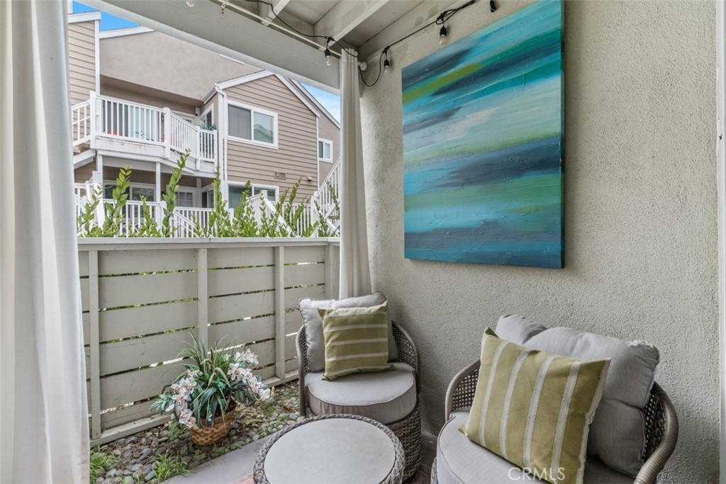 Just steps from the surf and sand at iconic Strands Beach, this beautifully updated ground-level corner unit in Dana Point offers the perfect blend of style, comfort, and location. Boasting 2 bedrooms, 2 bathrooms, and 1,022 square feet of thoughtfully designed living space, this unit resides in a front-row building and is nestled in one of the most sought-after coastal communities of Niguel Beach Terrace. Inside, you'll find a light and airy open floor plan with travertine tile floors throughout, a cozy fireplace, and large windows that flood the space with natural light. The living area flows effortlessly to a charming covered patio, creating the ideal indoor-outdoor living experience. The well-appointed kitchen features granite countertops, stainless steel appliances, and crisp white cabinetry. Both bedrooms are generously sized, with the primary suite offering its own en suite bath and access to the main patio. The secondary bedroom has its own private patio and wall to wall custom wardrobe wooden doors. Interior laundry is a rare find in this community so this unit truly has it all. Set within a well-maintained community just across the street from Strands Beach, this condo is perfect as a primary residence, vacation home, or investment opportunity. With two private outdoor patios and easy access to the best of Dana Point—including walking trails, world-class resorts, downtown shops and restaurants, and Dana Point Harbor—this is coastal living at its best.