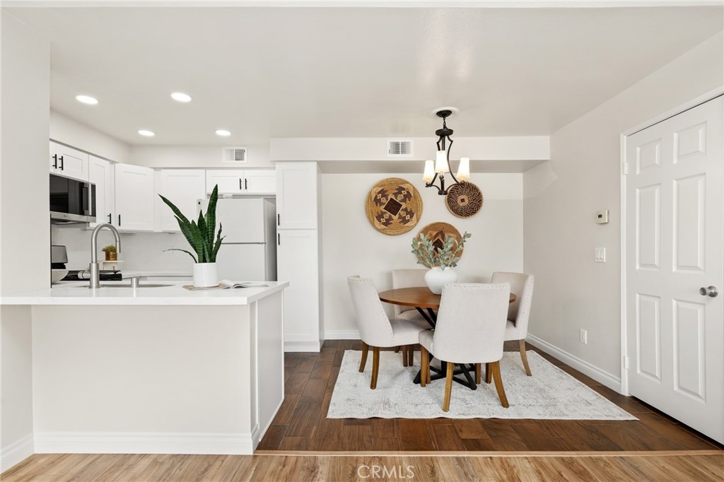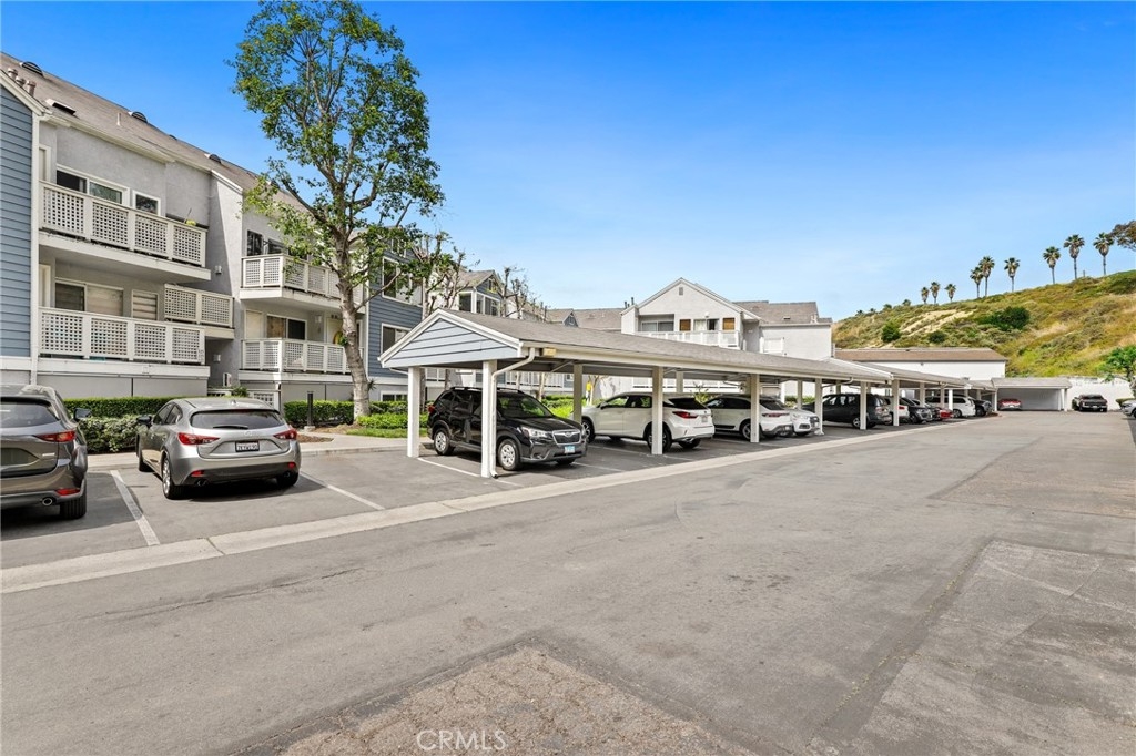 Perched on the top floor in the desirable Harbor Walk community, this beautifully upgraded 1-bedroom, 1-bath residence offers approximately 700 square feet of light-filled living space with a fresh, modern feel throughout. Soaring cathedral ceilings enhance the open layout, while fresh interior paint and updated flooring create a clean, move-in-ready environment. The inviting living room flows seamlessly into a charming dining area and extends to a full-length private balcony with a retractable awning—perfect for relaxing or entertaining. The remodeled kitchen is a standout feature, showcasing rich granite countertops, white cabinetry, and ample workspace for both everyday living and hosting. The serene primary suite features vaulted ceilings, a spacious closet, and a well-appointed en-suite bathroom with granite surfaces and a mirrored vanity. Additional highlights include an assigned carport and access to the community pool. Ideally located just about a mile from the beach, with quick access to the 5 Freeway and surrounded by an abundance of shopping and dining options, this home offers an exceptional blend of comfort, style, and coastal convenience.