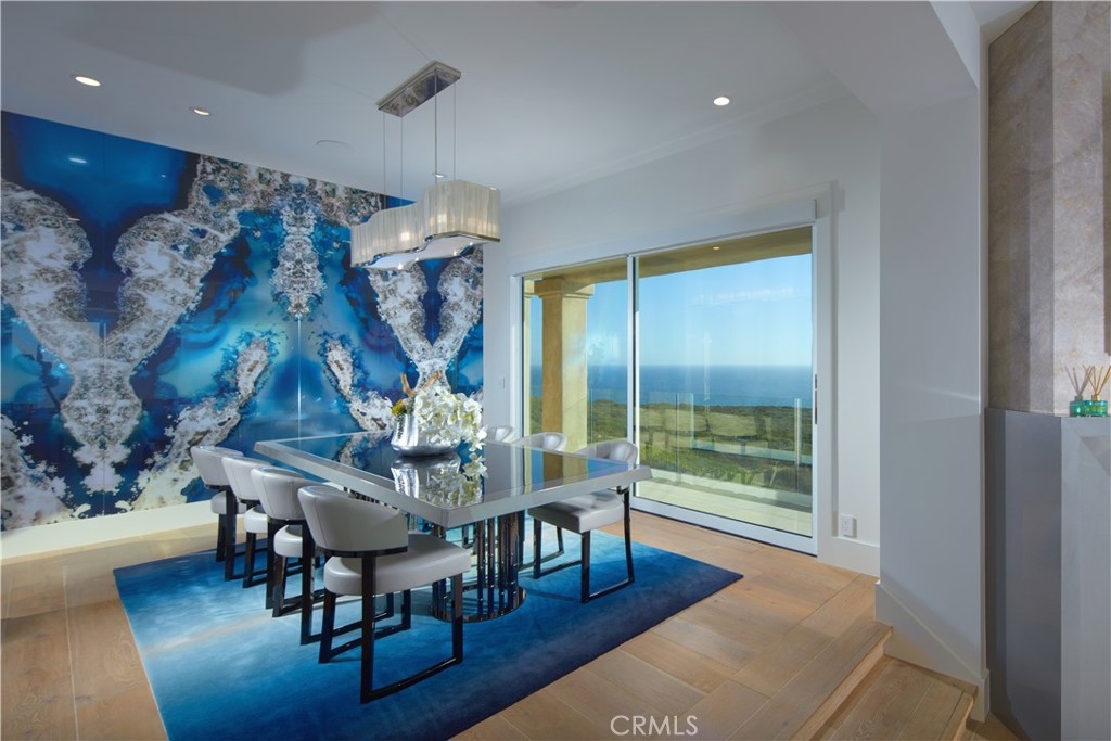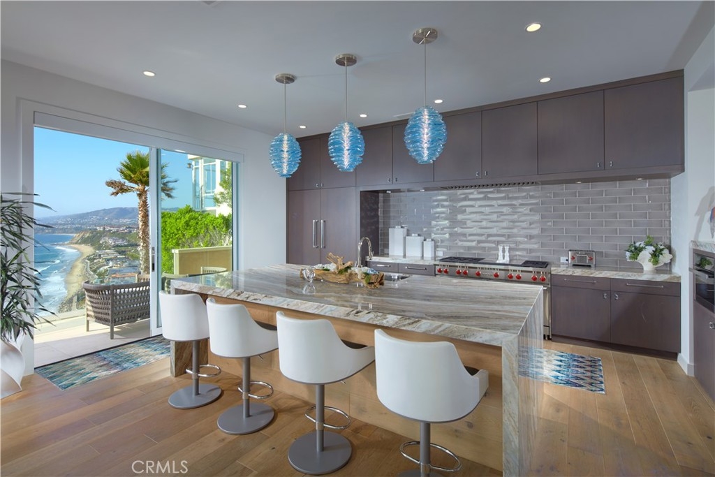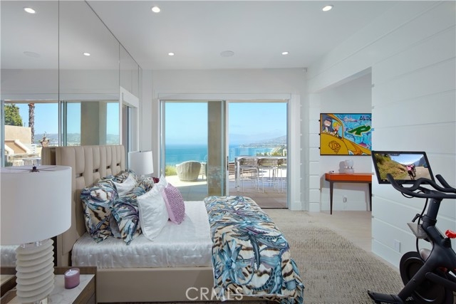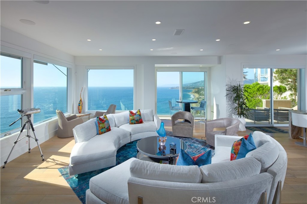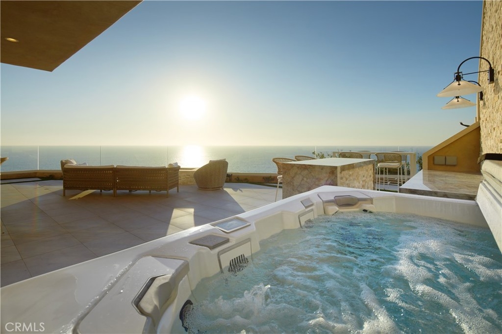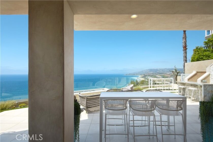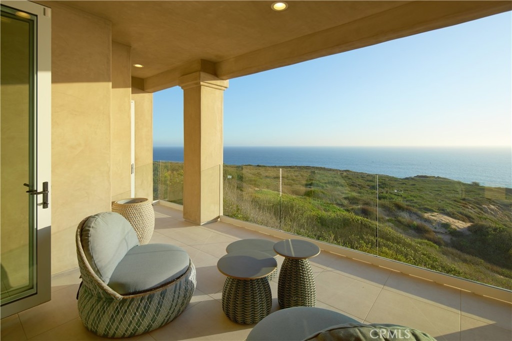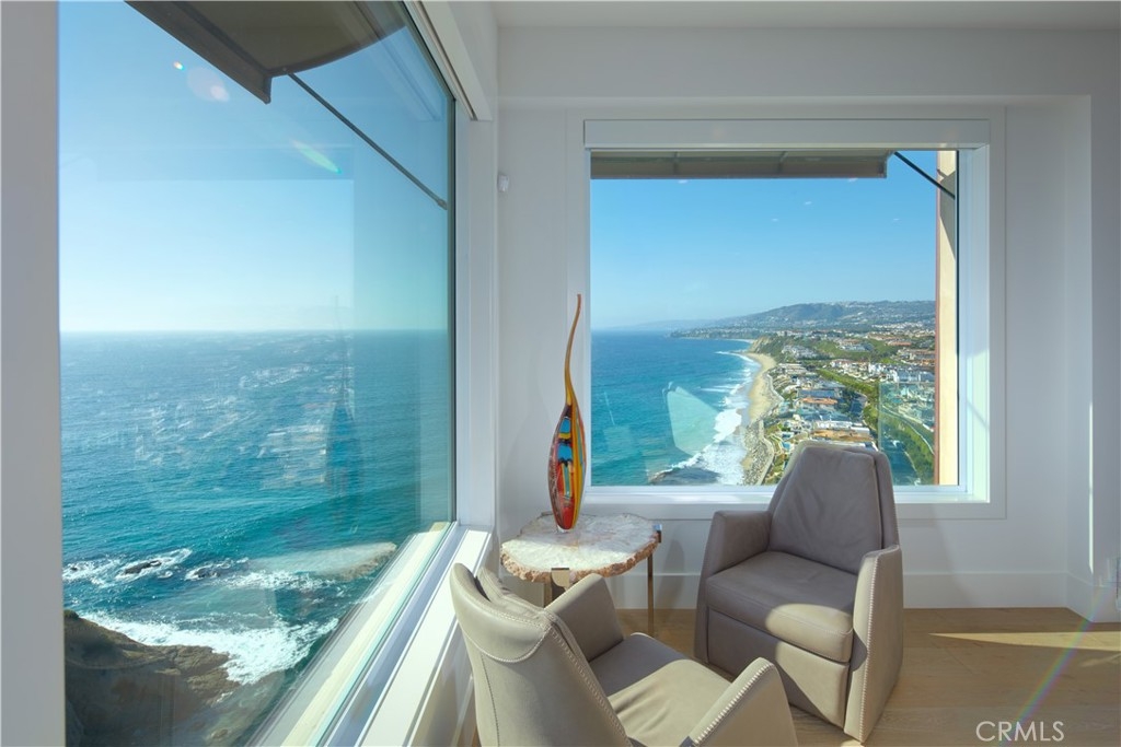OCEANFRONT WITH UNIQUE 7-CAR GARAGE. Perched atop Dana Point's historic Headlands, Residence B immerses you in unmatched ocean vistas from San Diego to Palos Verdes, blending modern luxuries with coastal elegance. This home stands apart due to a major remodel in 2017 and subsequent upgrades in 2021 and 2023, setting a new benchmark in coastal luxury living. As the largest floorplan in the community, this recently remodeled home boasts today's most desired features, offering bespoke living at the Pacific Ocean's edge. The unparalleled views span from San Diego, across crashing waves and sandy shores, to Catalina and north to Palos Verdes. This approximately 4,537 SF home includes three en-suite bedrooms and three-and-a-half baths. Upon entering through the gated entrance and double doors, you're greeted by a breathtaking foyer with an immediate ocean view, a Quintus chandelier, and a J.H. Minasian silk rug. Many hand-picked furnishings, included in the residence, are from top designers such as Roche Bobois, Cantoni, Holly Hunt, Shine by Sho, Ziething, and Jonathan Franc. The ocean-view dining room is accentuated by a custom glass wall panel, while the great room showcases vast windows, a linear fireplace, and a balcony with beach views. The state-of-the-art kitchen shines with beautiful quartz countertops, a sizable island, a walk-in pantry, and built-in appliances from Sub-Zero, Wolf, and Miele, including a coffee station, steam oven, and microwave/convection oven. Just steps above the main kitchen, discover a butler's pantry and a glass-enclosed, temperature-controlled wine room with a 567-bottle capacity. On the other wing, a chic home theater boasts over $156,000 in top-tier AV equipment and a built-in concessions cabinet. The primary suite offers mesmerizing ocean views, Thomas Lavin wall coverings, a standalone tub, built-in vanity, quartz countertops, and a spacious walk-in closet with custom California Closets built-ins. A new glass and steel staircase descends to the lower level, which invites relaxation in the family room, workouts in the gym that features an attached full bath, or outdoor enjoyment in the fully renovated backyard with an above-ground spa. The residence concludes with a seven-car custom-style garage, private with a separate garage door and access to the lower level.