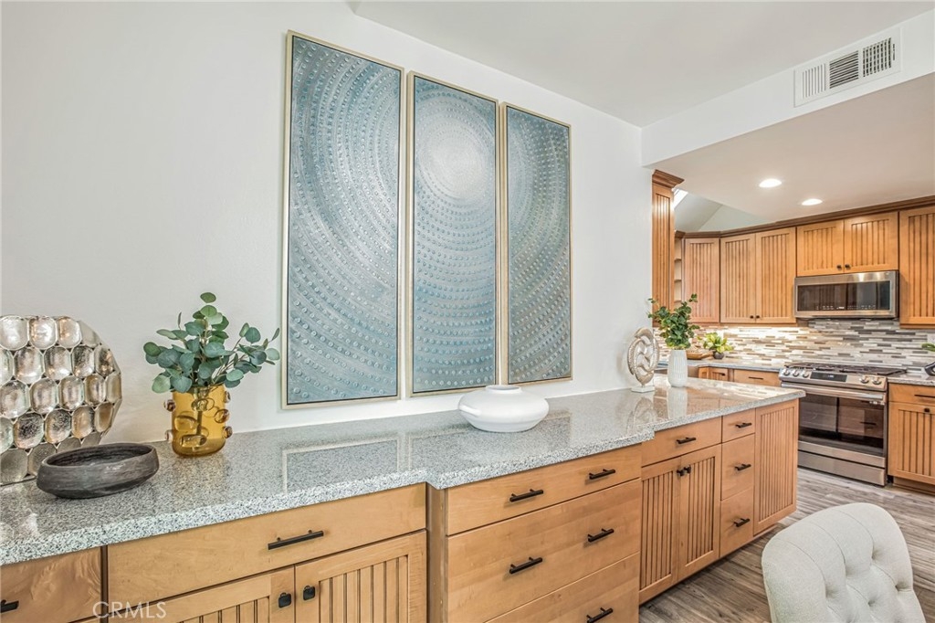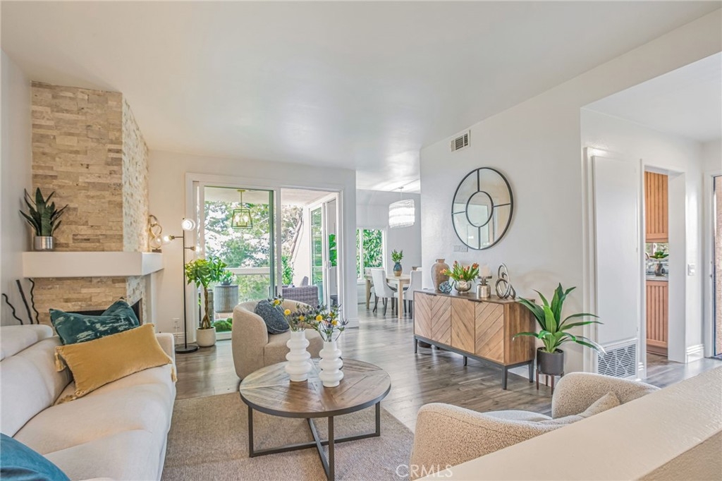 Motivated Seller! Price Reduction. Single story Ocean/Catalina View End Unit in Gated Encantamar in Dana Point. Located in the highly sought-after gated community of Encantamar, directly across from Bear Brand Ranch. This immaculate single-level end unit residence offers privacy, elegance, and convenience in a rare, move in ready opportunity. Nestled on a spacious cul-de-sac with a generous two car garage, the property features a private entry path leading to an elegant beveled glass front door, setting the tone for the sophistication within. Step inside and you’ll immediately feel at home in this high tech sanctuary. Upgraded with new, high-end stainless steel appliances, a brand new heat pump HVAC system with Google Nest V4 controls, and dimmer switches throughout to create your perfect lighting ambiance. The moment you step into the kitchen, you'll be captivated. An ocean view back drop awaits, complemented by abundant custom cabinetry with soft-close drawers and built-ins. Long granite countertops provide ample workspace for cooking and entertaining, making this kitchen a dream for chefs and hosts alike. The open dining area, illuminated by a stunning crystal chandelier, flows seamlessly into the living room, and patio. The living room offers a cozy stacked stone fireplace which adds warmth and charm. Two sliding glass doors from dining room and living room frame the ever changing ocean views and mature trees, creating a tranquil indoor/outdoor living experience enhanced by the cool coastal breeze. The smart floorplan separates the guest bedroom at the front from the expansive primary suite in the back. The primary suite features a spacious en-suite bath with dual sinks, granite countertops, a large walk in shower, separate water closet, and a generous walk-in closet, bringing spa like comfort into everyday life. Enjoy walkable access to premium shopping, dining, and entertainment. Just minutes away are world class beaches and the newly revitalized Dana Point Harbor, as well as the vibrant and evolving downtown Dana Point, now a hub for unique eateries and boutique experiences. Bonus: Furnishings are new and negotiable, perfect for buyers seeking a truly turnkey home. This is the one you’ve been waiting for. Don’t miss your chance to own a slice of coastal luxury. Schedule your tour today!