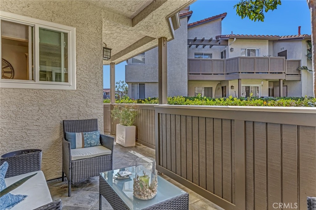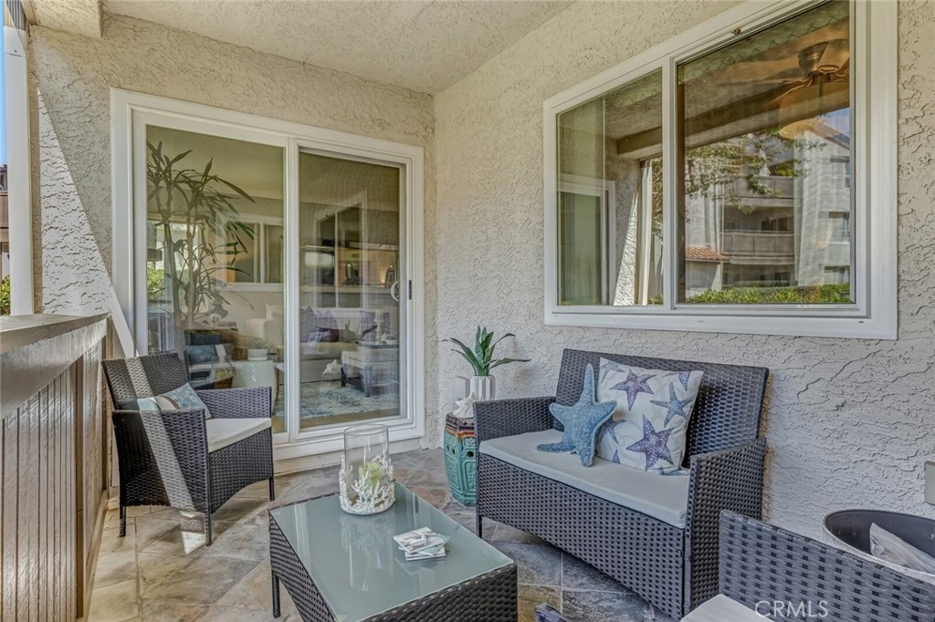 This is your chance to enjoy beach city living! Situated in coveted Ritz Pointe, this single level condo has been beautifully updated and immaculately maintained. This desirable corner end unit opens into a bright and open living room, with a cozy fireplace and access to the wrap-around stone-tiled patio that looks out to a lovely grassy area. Dedicated dining room is adjacent to the updated kitchen, with ample storage, a breakfast nook, tile flooring and custom cabinetry. The two sizeable bedrooms enjoy privacy from one another by being on opposite ends of the unit, and both feature walk-in closets. In addition to tasteful cosmetic upgrades, this condo also has great functional upgrades, like a new A/C unit and furnace, newer double-pane windows and sliders, and wood-style laminate flooring throughout. Laundry is conveniently located just outside the master in a dedicated storage room off the patio. The assigned carport space is just steps from the front door, with ample guest parking. Association features include 24-hour guarded gates, a renovated pool, ocean-view spa, gym and clubhouse, and a scenic trail through the Monarch Beach Links golf course that leads directly to Salt Creek Beach. Conveniently located near many other resort-style amenities, such as luxury hotels like the Monarch Beach Resort, Ritz Carlton and the Waldorf, as well as fabulous shopping centers, restaurants, and beaches.